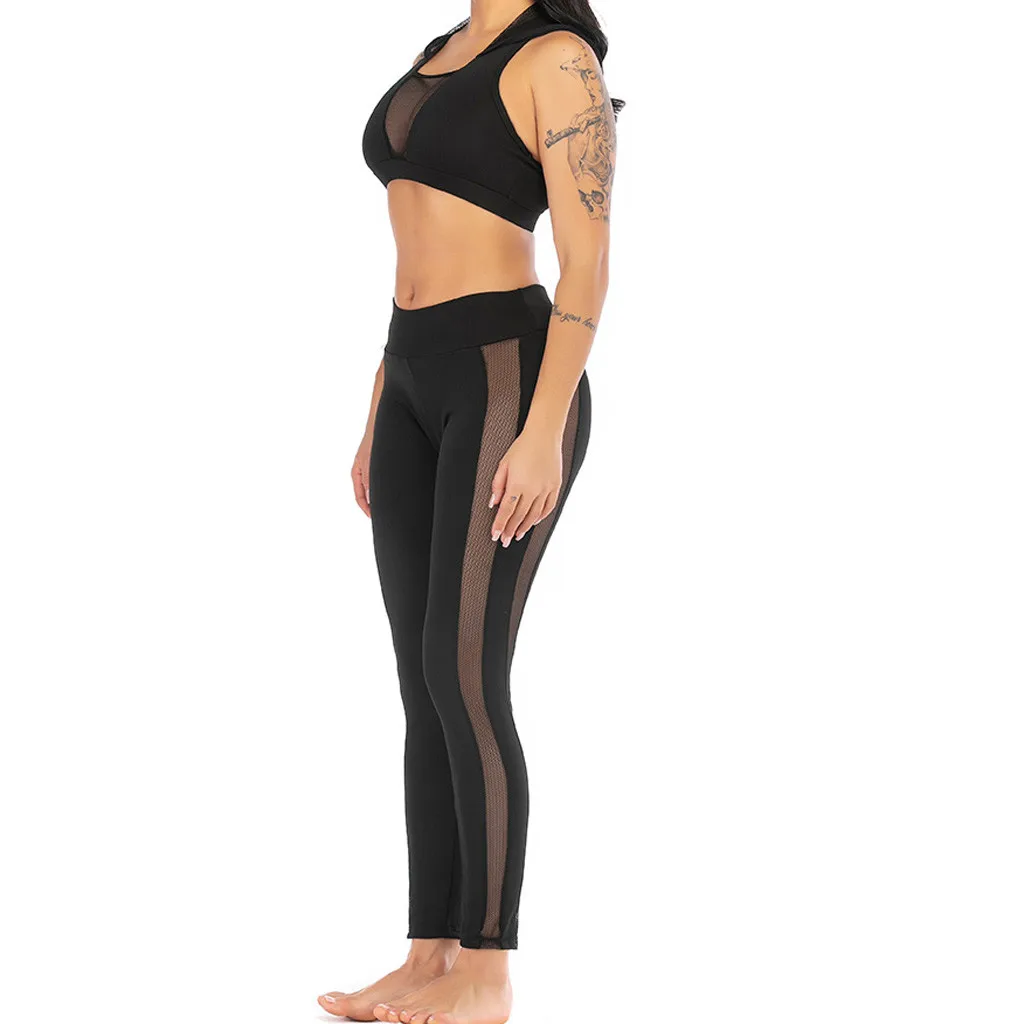 Женская перспектива Йога с капюшоном жилет брюкиСпортивный комплект для фитнеса: эластичные Топы + штаны