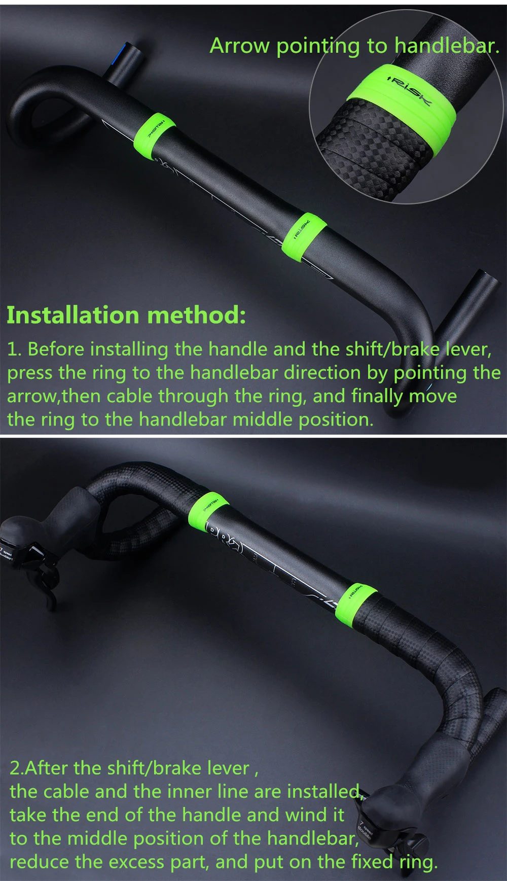 1. Перед установкой ручки и рычага переключения/тормоза нажмите кольцо в направлении руля, указав стрелку, затем прокрутите кольцо через кольцо и, наконец, переместите кольцо в среднее положение руля. Стрелка, указывающая на руль. 2. После того, как рычаг переключения/тормоза, кабель и внутренняя линия установлены, возьмите конец ручки и намотайте его в среднее положение руля, уменьшите излишки части, И наденьте фиксированное кольцо.