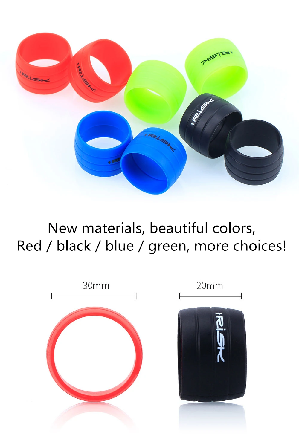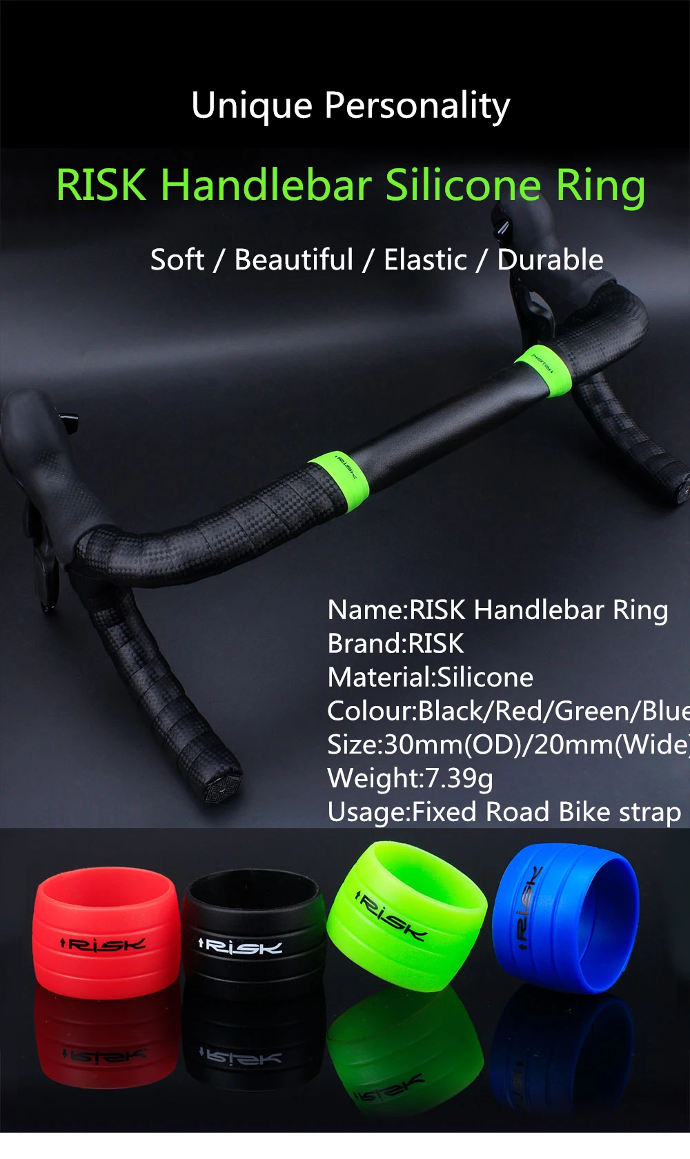 Риска руль Силиконовое кольцо Мягкий/красивый/эластичный/прочный Наименование: кольцо на руль Бренд: RISK Материал: силикон Цвет: черный/красный/зеленый/синий Размер: 30 мм (OD)/20 мм (в ширину) Вес: 7,39 г Использование: фиксированный дорожный велосипед ремень
