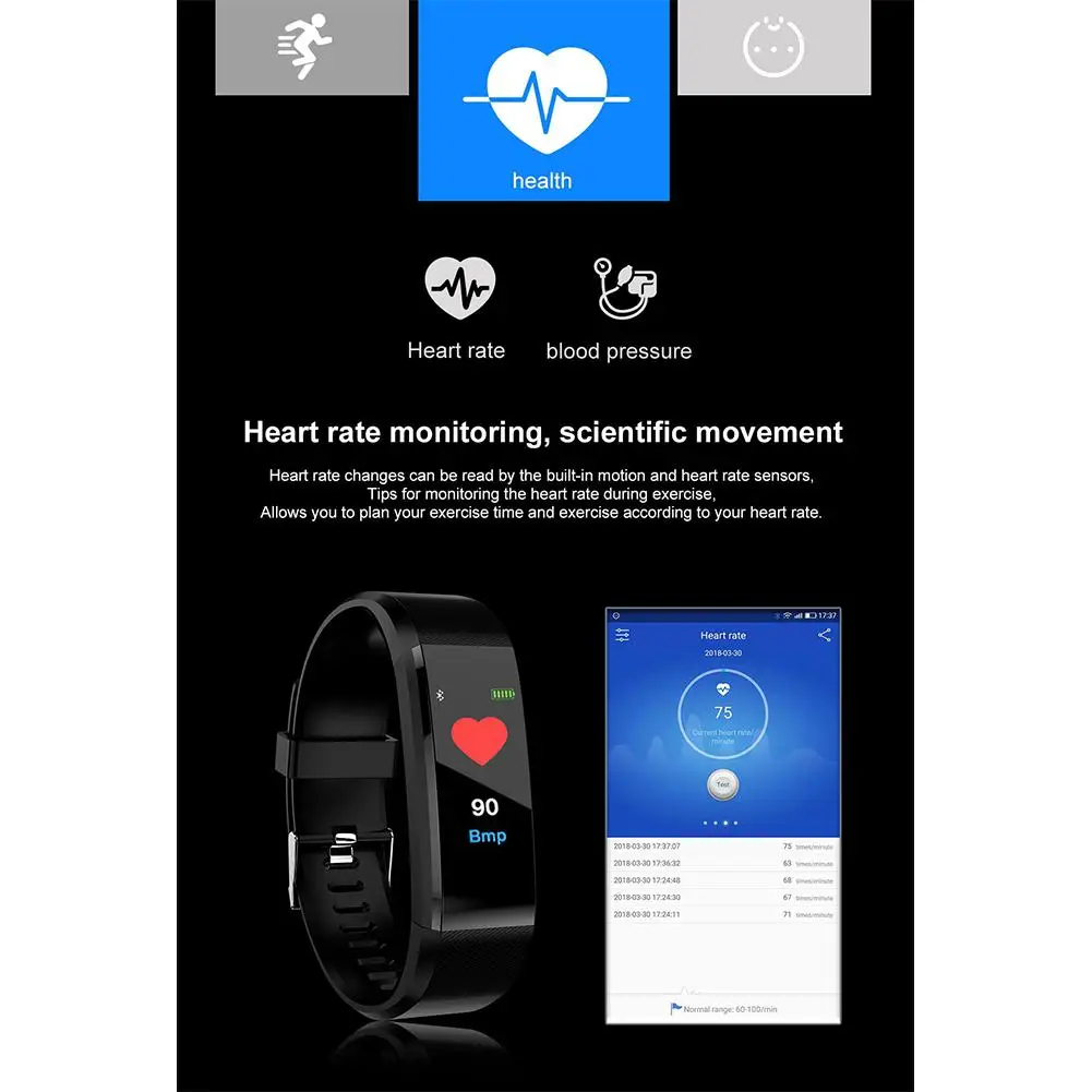 Напоминание о малоподвижности: чтобы помочь вам вести более здоровую жизнь, браслет будет напоминать вам о том, сидите ли вы слишком долго и побудит вас тренироваться. Монитор сна: может контролировать время сна, качество сна, глубину сна и, наконец, разработать модель сна, чтобы настроить привычку сна. Спортивный трекер: автоматически обнаруживает общие виды деятельности, такие как ходьба, бег и другие упражнения. Функция защиты от потери: браслет даст напоминание, когда рабочее расстояние соединения находится вне диапазона.Описание: