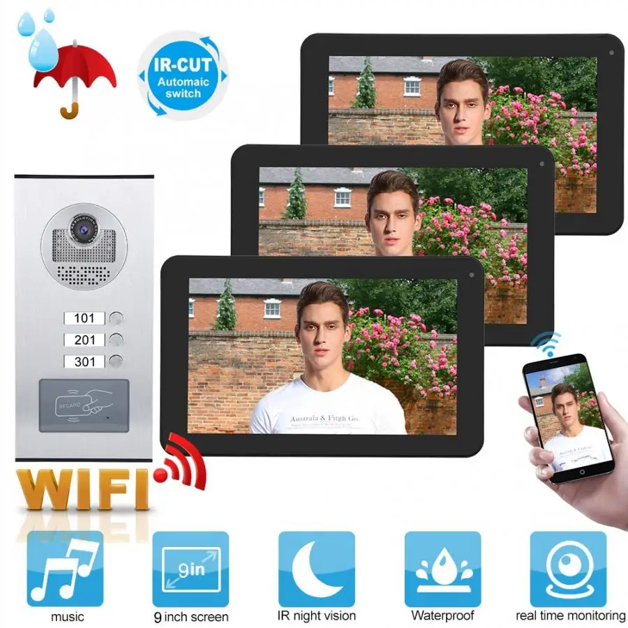 9 дюймов умный сенсорный экран беспроводной wifi домофон дверной звонок Система видео монитор приложение 100-240 В