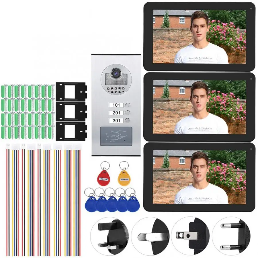 Этот Дверной телефон имеет большой экран, который легко установить и использовать, обеспечивая ощущение красоты и безопасности. Вы не должны беспокоиться о безопасности семьи, это добавит больше удобства вашей повседневной жизни. С адаптерами и кабелями, предоставленными в этом комплекте, вы можете легко установить и внешний блок можно подключить к внутренний дисплей с помощью проводного Кабеля 4 P. Когда внутренний монитор подключен к беспроводному Wi-Fi роутеру, вы можете подключить телефон к крытому монитору, а затем телефон может также записывать видео или открывать дверь. Этот специальный дизайн полностью удовлетворит потребности трех семей. 9 дюймов цвет TFT ЖК-дисплей не имеют излучения, низкое энергопотребление и высокой четкости. Внутренний монитор поддерживает подключение 8 пользователей мобильных приложений, поддерживает IOS/для мобильных телефонов системы Android, а мобильный телефон может просматривать и разблокировать. Внутренний дисплей можно подключить к беспроводному Wi-Fi роутеру. Он может делать фотографии вручную, запись видео и разблокировка. IR-CUT камера с ночным видением. Поддержка 1000 идентификаторов пользователей для разблокировки. Поддержка электрического управления замком, громкой связи, можно выбрать 25 мелодий.