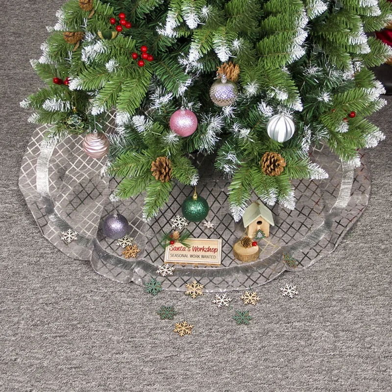 Рождественская Праздничная тканевая юбка с изображением дерева, серебряная клетчатая юбка с милым низом