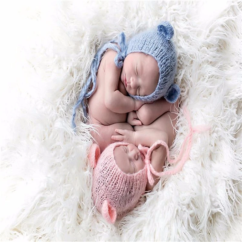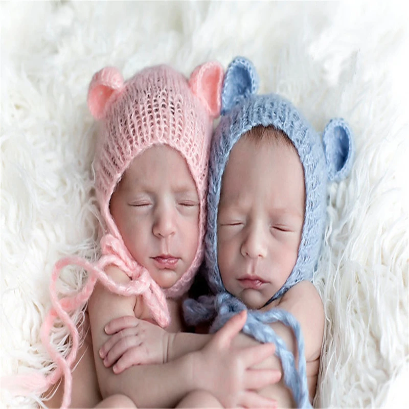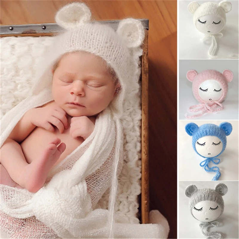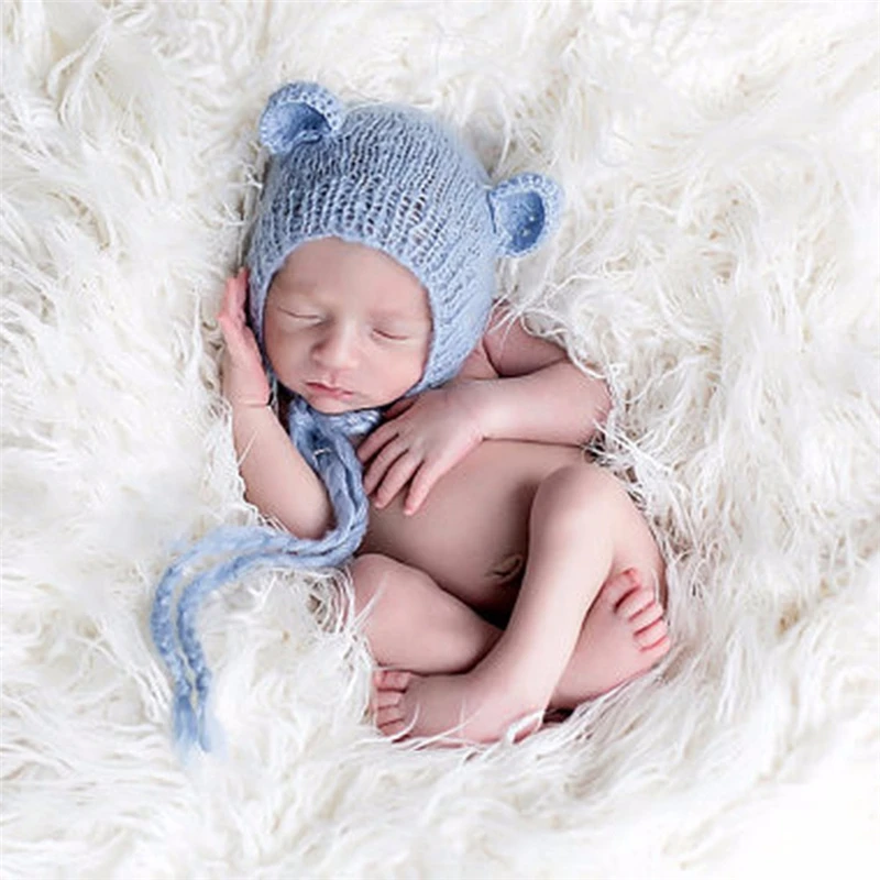 Для новорожденных, мохер, Шапочка-медвежонок с ушками, 3 цвета, 0-6 месяцев, шапка для новорожденных, ручная работа, вязаный мягкий мохеровый капор, реквизит для фотосъемки новорожденных