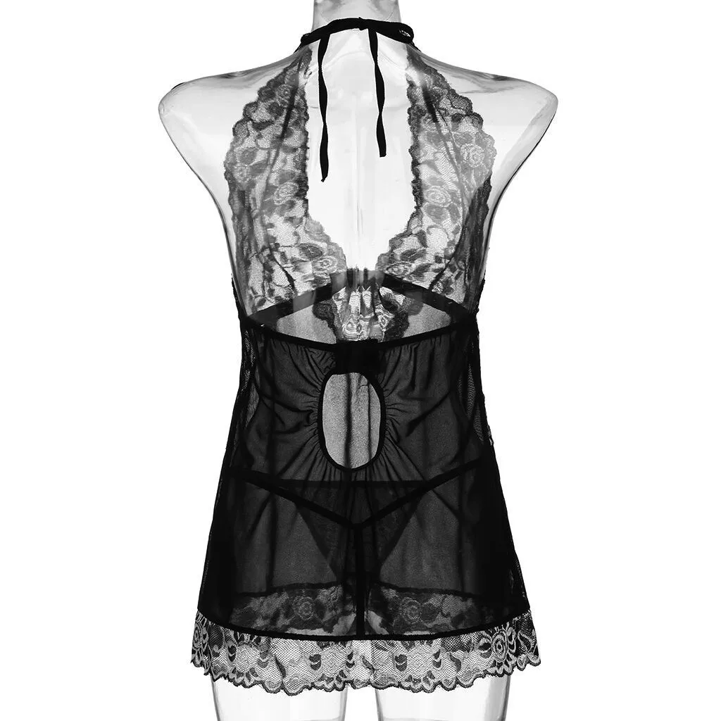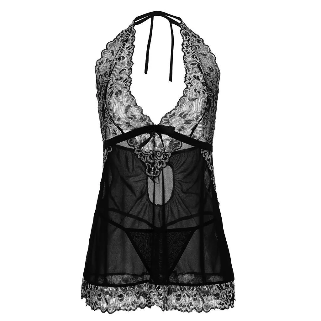1.Женское нижнее белье с глубоким v-образным вырезом, кружевной сетчатый прозрачный комплект babydoll с стринги с цветочными кружевными чашками