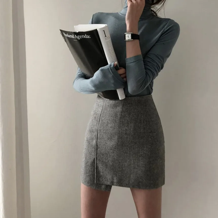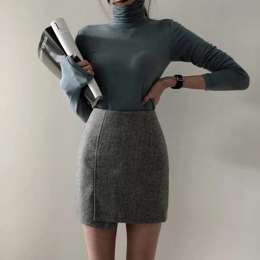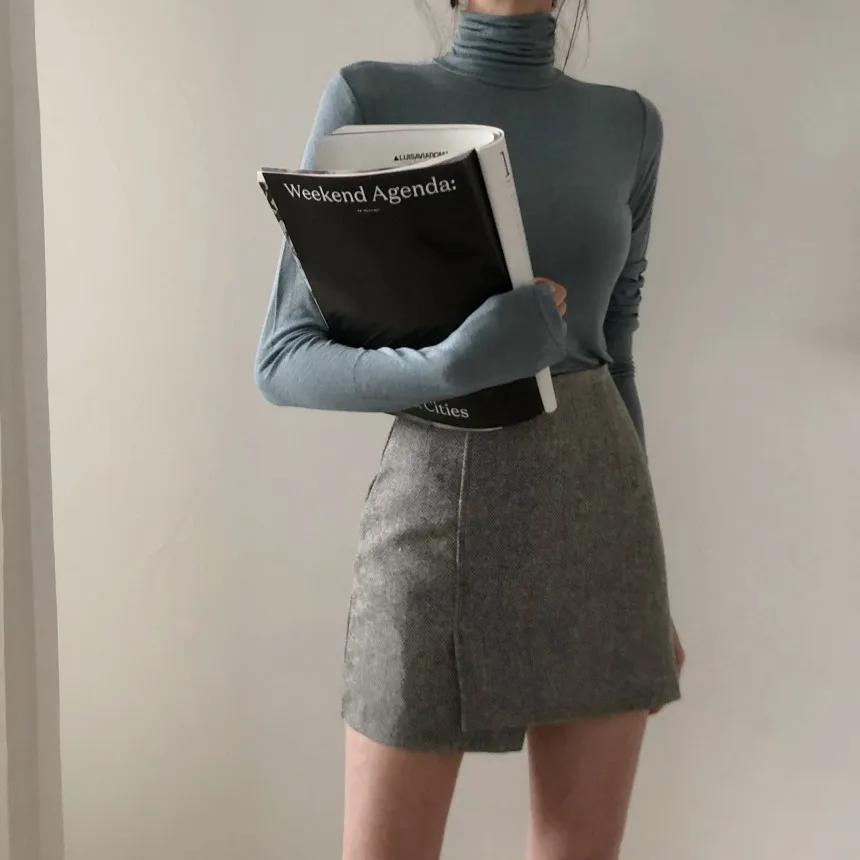 Темпераментные зимние базовые Топы женские с длинным рукавом облегающие сексуальные дизайнерские футболки из хлопка в Корейском стиле 9808