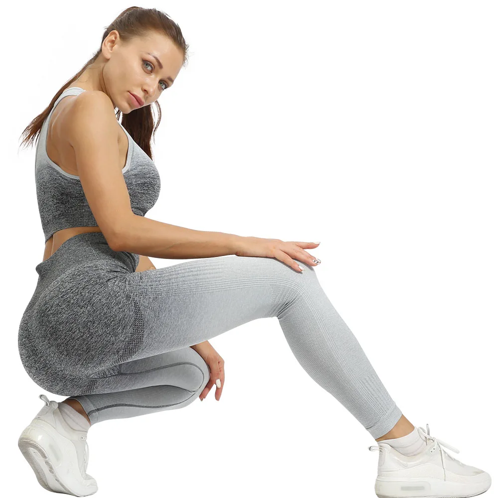 Комплект из 2 предметов для йоги, Женский бесшовный спортивный комплект, спортивная одежда для тренировок, фитнеса, йоги, бюстгальтера и спортивных леггинсов, комплект для бега
