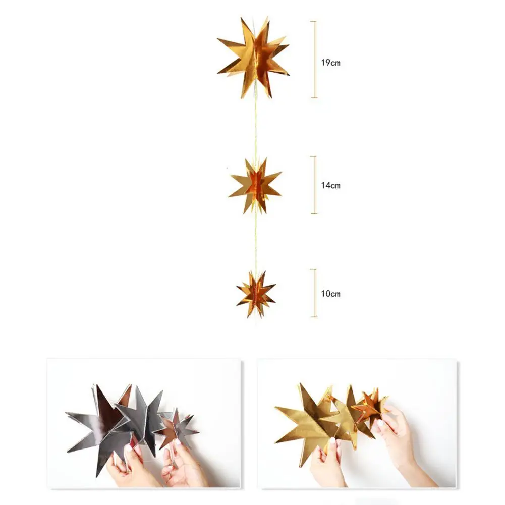 Спецификация: 2 м длинная звезда с восьмиугольным диаметром 10/14/19 см, 2 для каждого размера, с интервалом 20 см