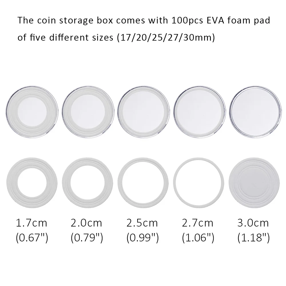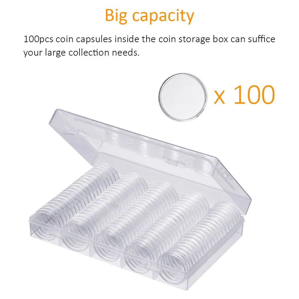 The 7.27*4.72inch(L*W) coin storage box can contain max 100pcs coins, great for protecting your coin case capsules, keeping them sorted and organized. 100pcs coin capsules inside the coin storage box can suffice your large collection needs.
