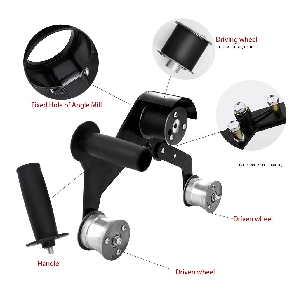 Это профессиональный шлифовальный ленточный адаптер. Вы можете преобразовать угловую шлифовальную машину в ленточный шлифовальный станок своими руками. Легко устанавливается и работает. Это идеальный инструмент для ленточного шлифовального станка.