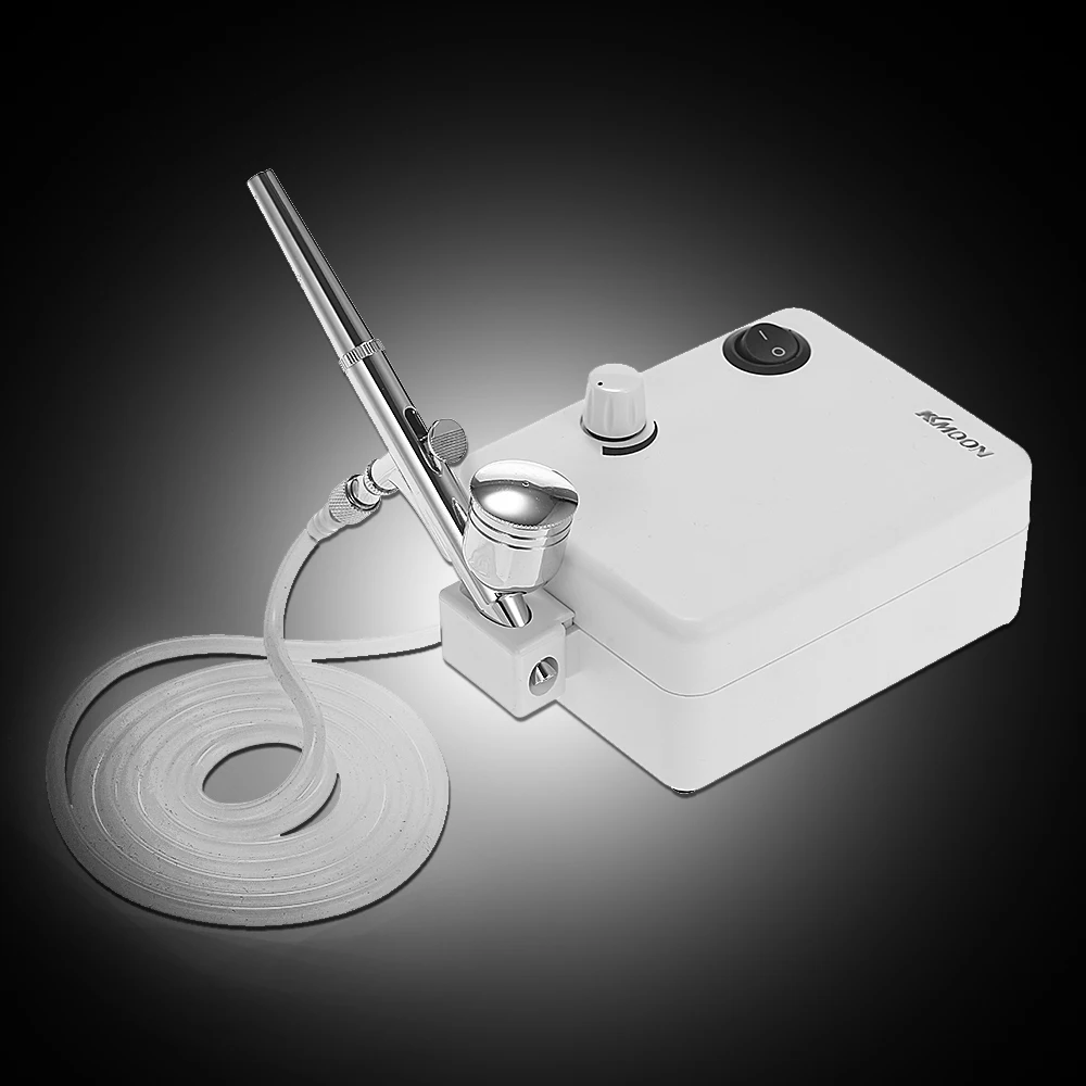 Включает портативный воздушный компрессор, воздушный шланг, двойного действия гравитационный питательный Аэрограф, мини воздушный фильтр и держатель.
