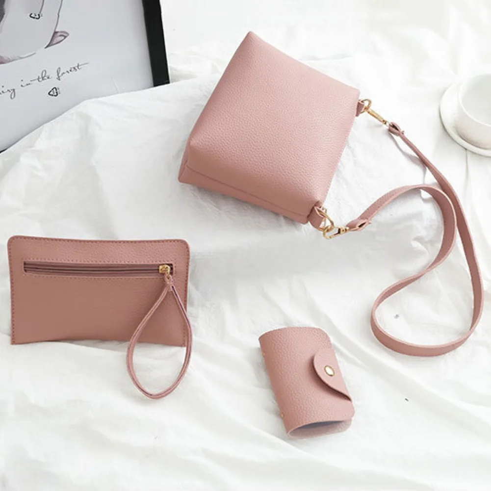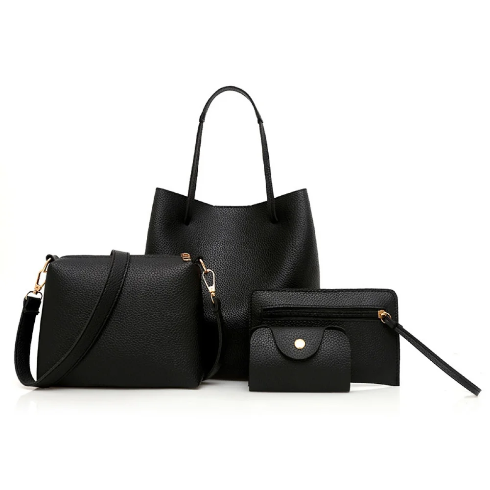 4 шт Женская мода сплошной цвет мягкий кожзаменитель Сумка Сумочка Кошелек Набор