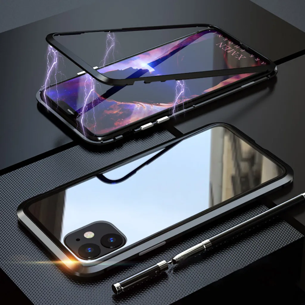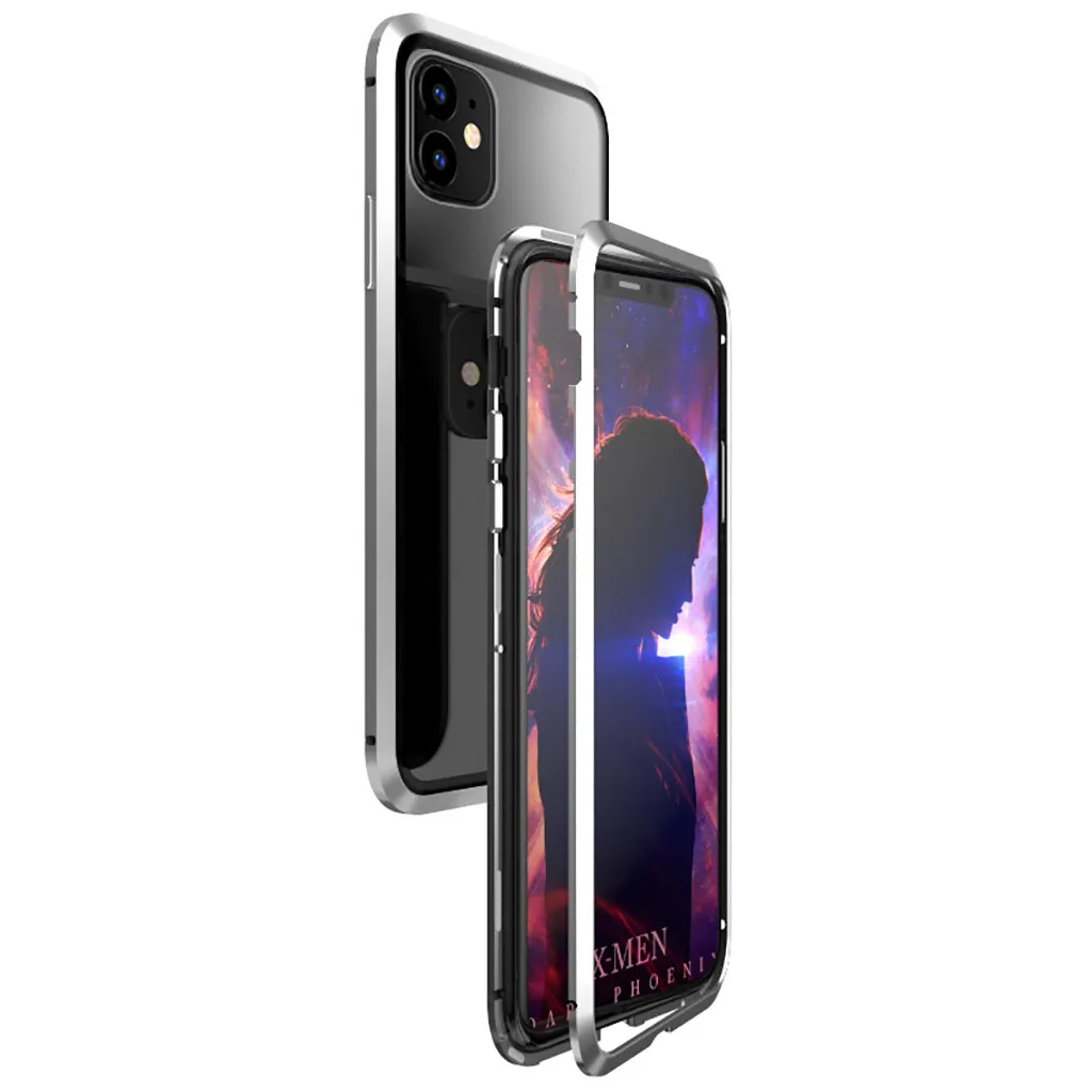 Магнитный адсорбционный металлический бампер односторонний стеклянный чехол для iPhone 11