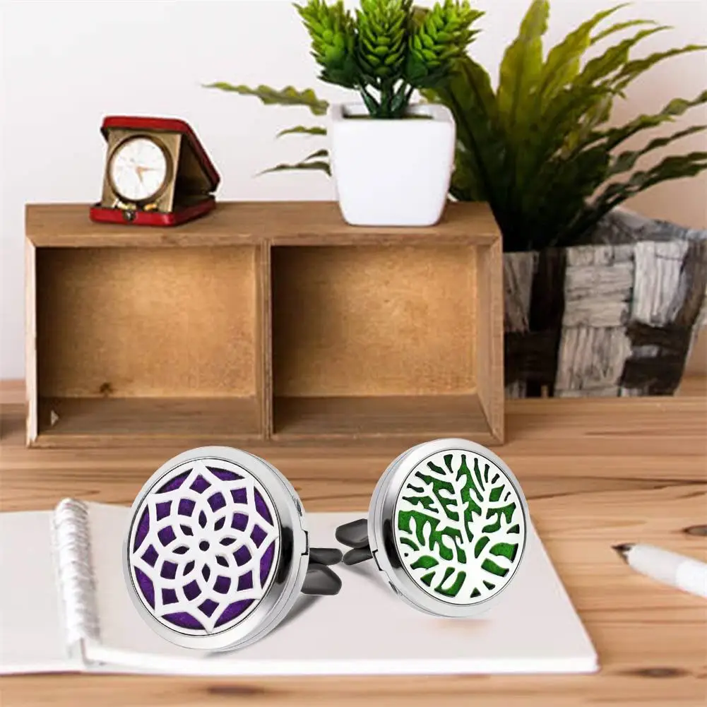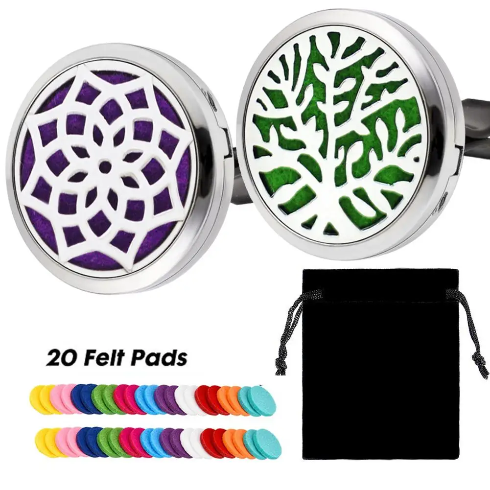 1、2 CAR DIFFUSER LOCKET INCLUDE - You will get 2 car diffuser vent clips with different design patterns, they come with 20 pcs refill pads, you can add different essential oils with different colors of pads20 x replacement felt pads (Random Color)