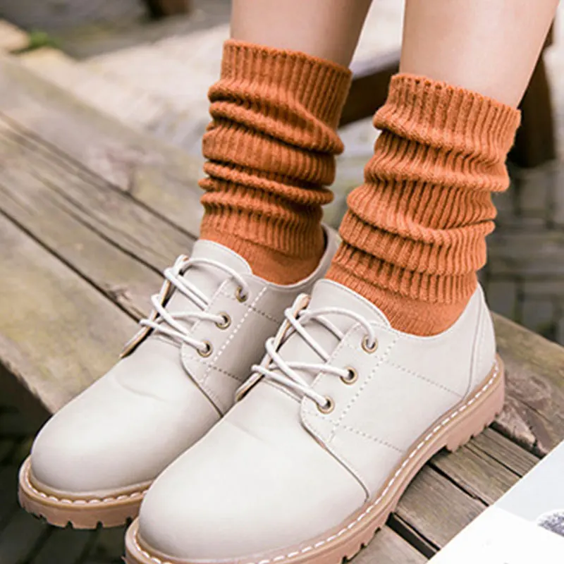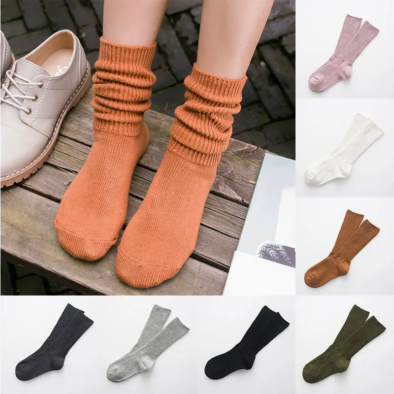 Женские носки, носки с ворсом, японские носки средней длины, хлопковые носки с двойной иглой