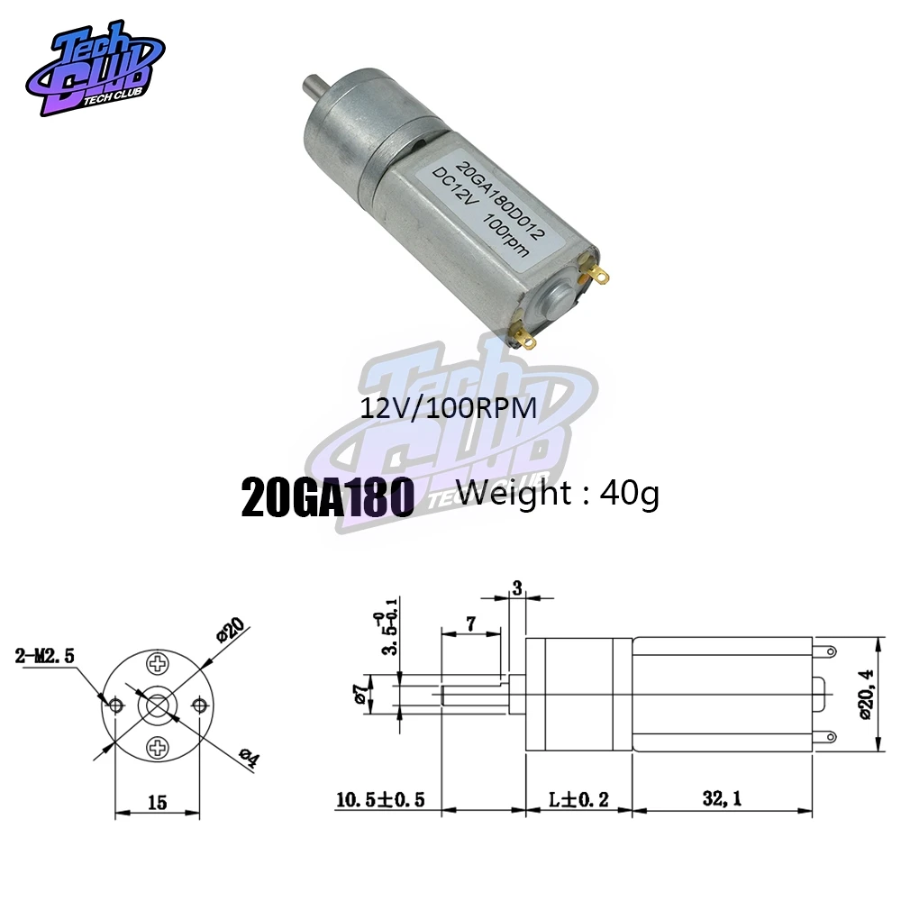 Описание: Новинка и высокое качество Модель: 20GA180 Напряжение: 12 В постоянного тока Размер: как показано на картинке Выбор скорости без нагрузки: 100 об/мин Основной материал: металл Вес: 40 г Особенности: Редуктор имеет большой крутящий момент, небольшой шум. Увеличение нагрузки усиливает крутящий момент двигателя, в основном используется в самодельных игрушках, низкоскоростных бытовых приборах! Упаковка включает: 1x20GA180 мотор-редуктор