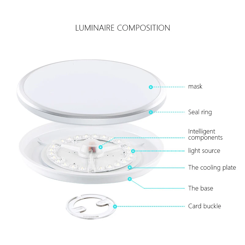 Simpler design. Modern lamp for living room lightingUltra thin .Saving your space.Easy to install. Only two steps to completed the installtionLight Motion sensor: only work when people in darkness and sensor range.Voice control: only work when people in darkness and have voice Very convient.The base and the lamp body are separated and designed, the replacement is convenientSpecification: