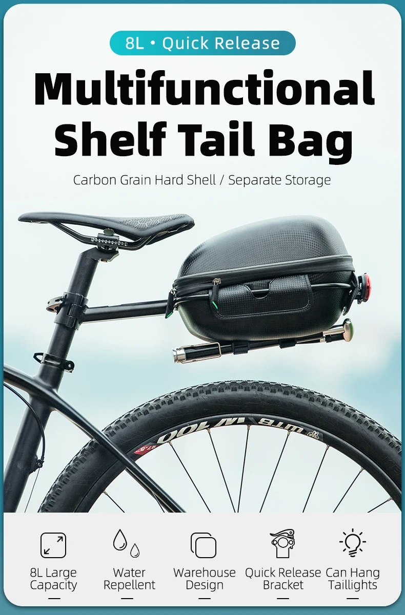 Название: велосипедное седло, жесткий корпус, водонепроницаемые подседельный штырь Бренд: Rockbros Размер: около 28*19*18,7 см Нагрузка: около 10 кг Материал: зашифрованная подкладка + Эва Цвет: черный Расположение: заднее сиденье, рама