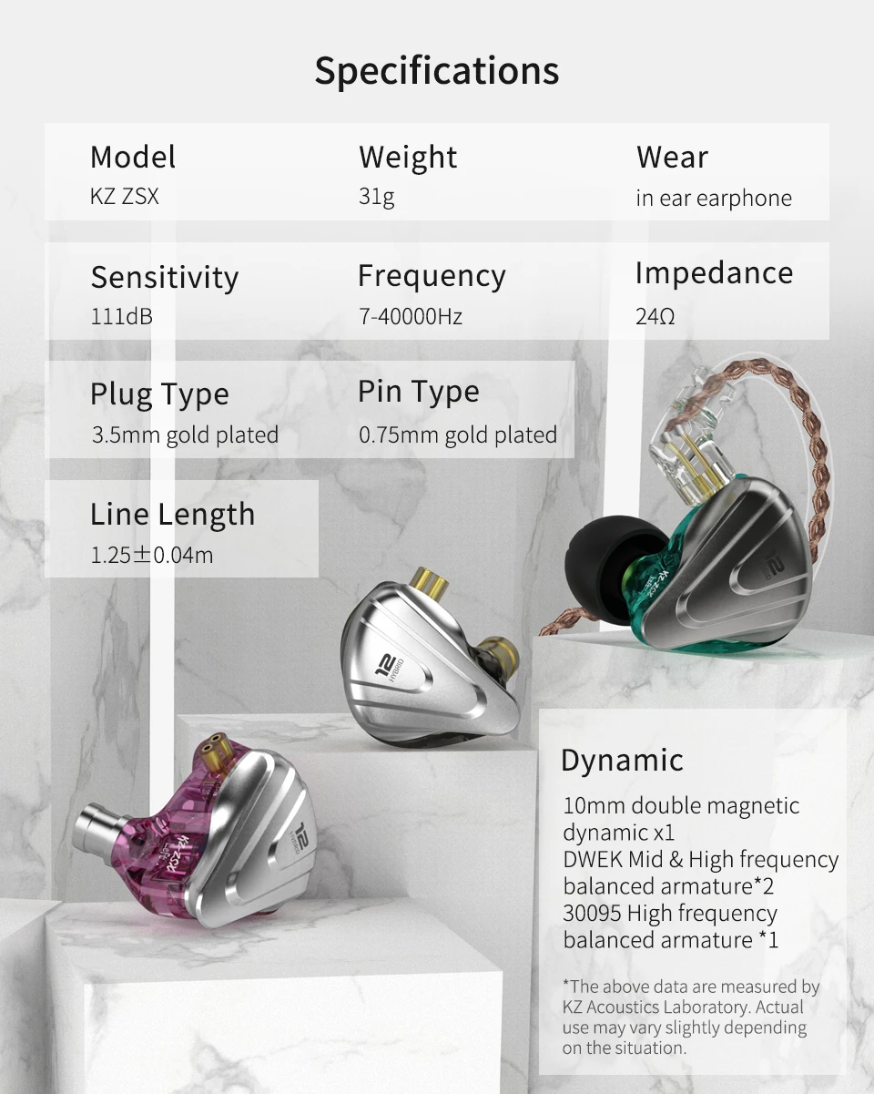 1.Название продукта:ОригиналKZZSXНаушники в ухо 2.Бренд:KZ 3.Модель:ZSX 4.Тип наушников:В ухо 5.Сопротивление: 24Омега 6.Чувствительность наушников: 111ДБ/мВт 7.Частотный диапазон: 7-40000 Гц 8.Интерфейс: 3,5 мм позолоченный 9.Тип вилки: L изогнутый 10.Длина кабеля: 1,2mplusmn3cm 11.Цвет: черный, фиолетовый, голубой 12.Есть ли кабель: Да 13.Интерфейс наушников:2-контактный интерфейс 14.С микрофоном:Опционально 15. Можно ли заменить кабель: Да 16.Блок драйвера: 1DD + 5BAГибридный ДрайверДля меня, как для человека спортивного и следящего за своим здоровьем Смарт - часы BV9900 C стали незаменимым помощником.С их... Читать отзыв полностью...