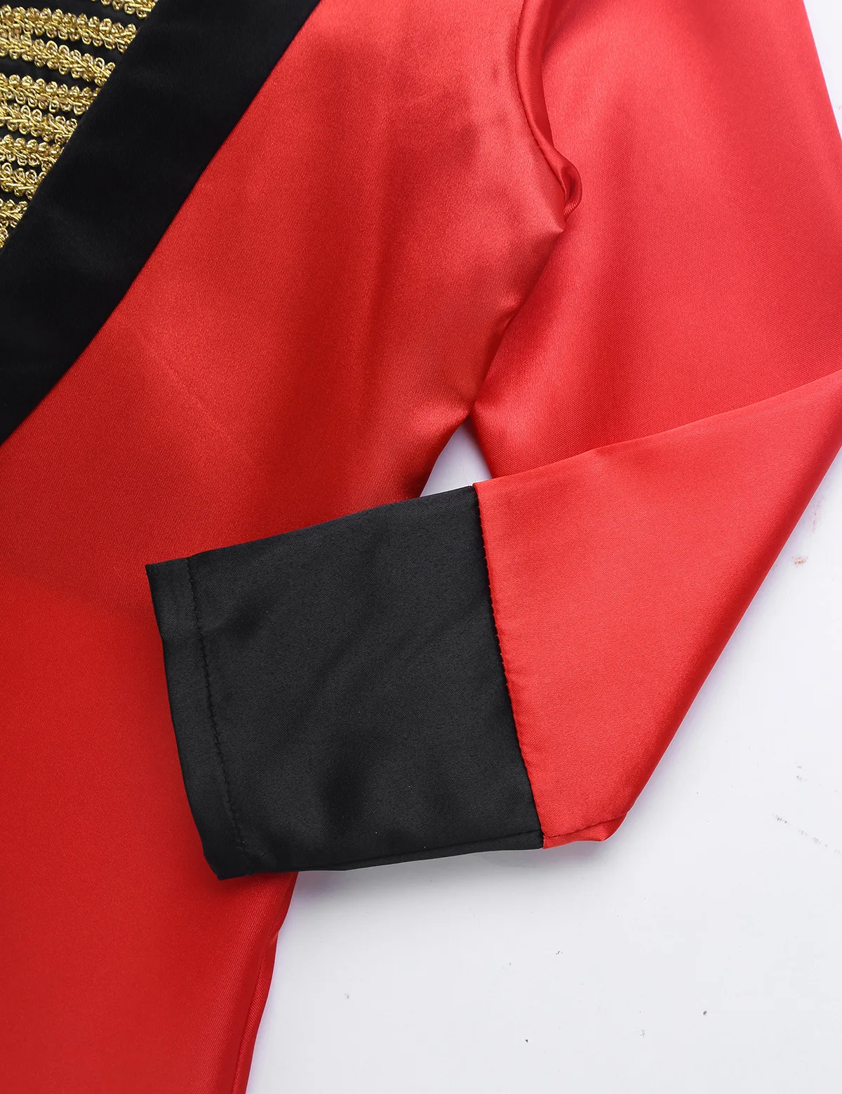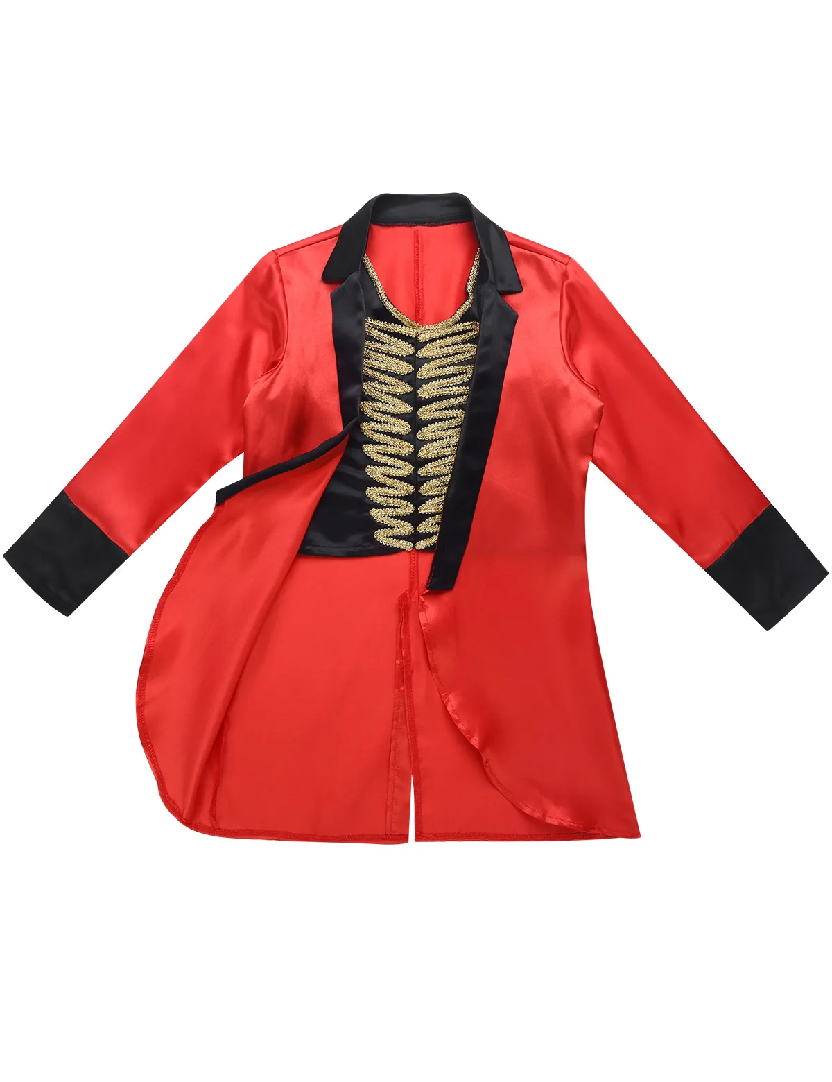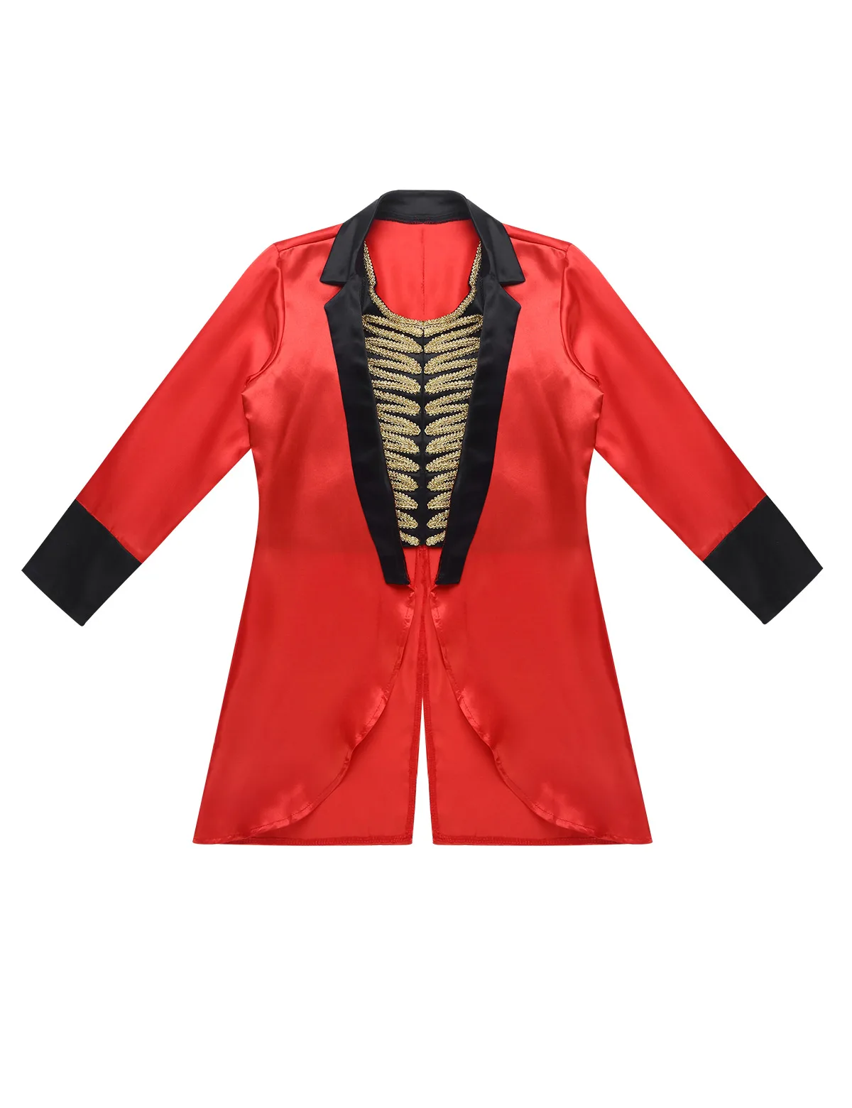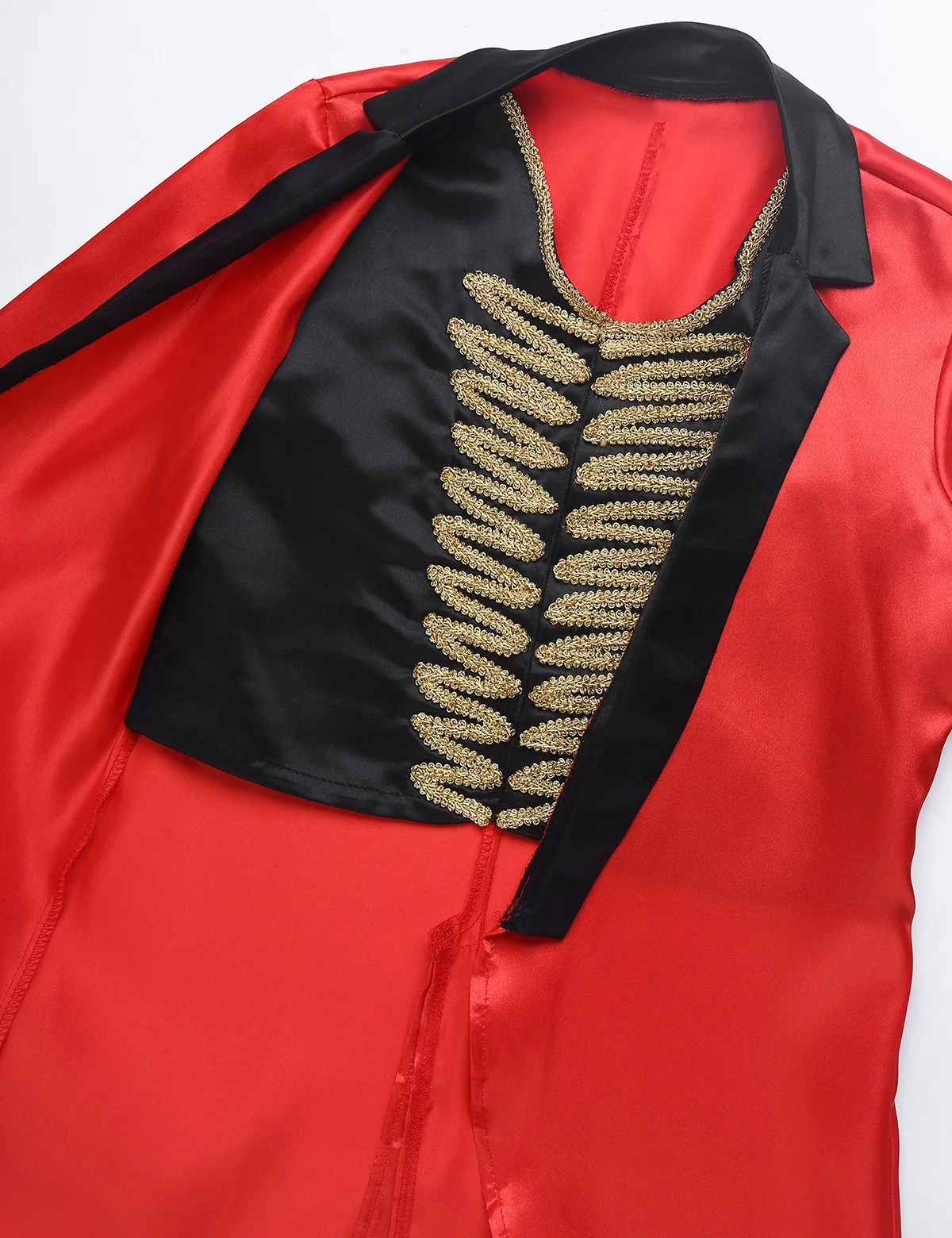 Куртка с длинными рукавами; дизайн с широким воротником; внутри прикреплен жилет с застежкой-липучкой, украшенный золотыми плетеными нитями. Спинка с разрезом.