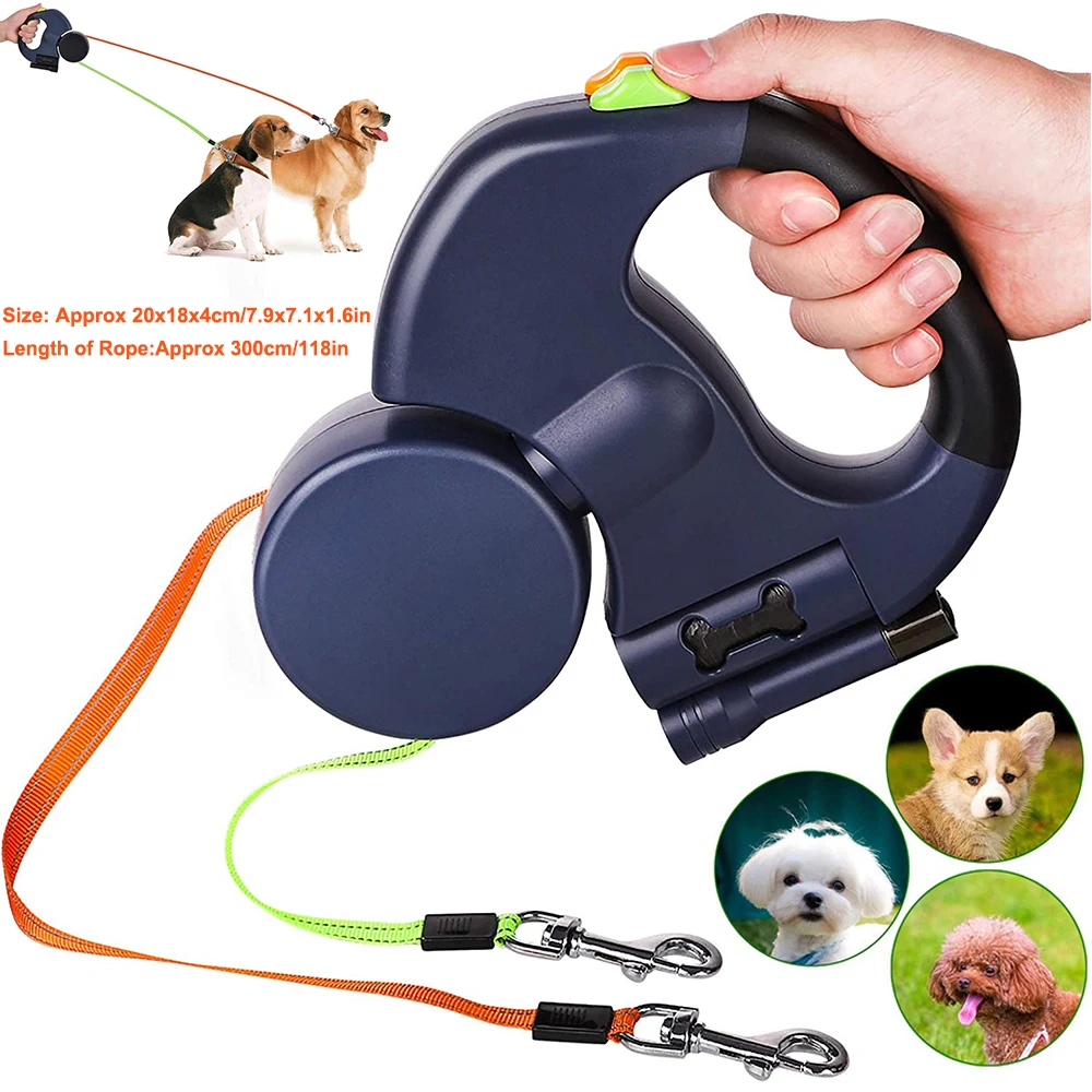 Поводок с двумя головками для домашних животных, автоматический выдвижной гибкий поводок для собак, кошек, поводок с двумя головками, ручной держатель, светодиодный светильник