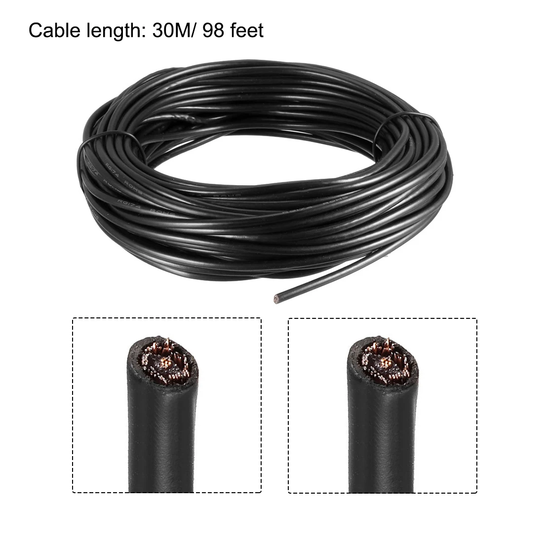 Удобный и экономичный коаксиальный кабель обеспечивает запасную часть или замену для различных систем. Прочный Центральный проводник, Диэлектрическая изоляция и Экранирование луженой медной оплетки; Прочный и гибкий внешний слой из ПВХ. Безопасно для использования в помещении или на улице.
