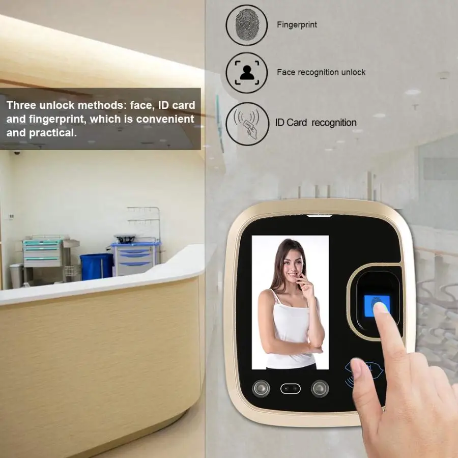 4,3 дюймов TFT TCP/IP 125 кГц RFID распознавание отпечатка лица карты посещаемости машины контроля доступа 100-240 В
