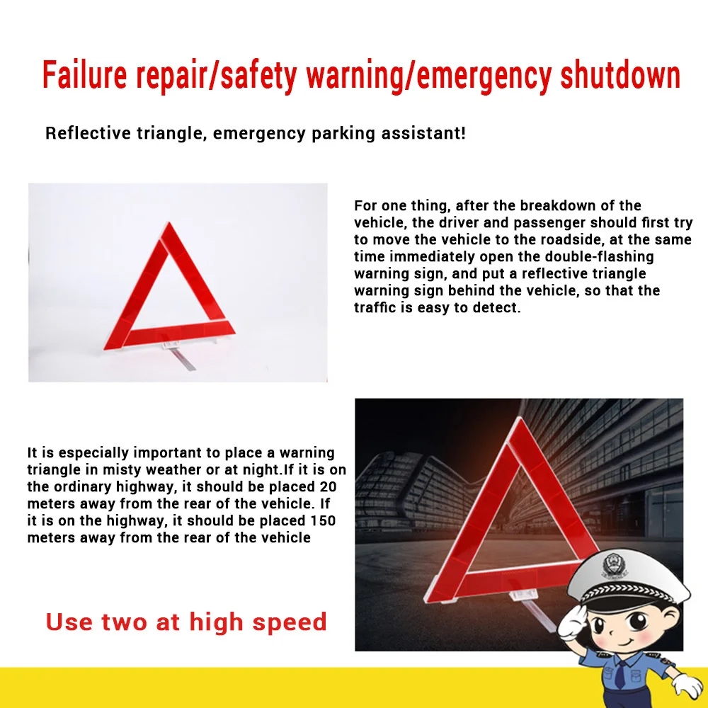 Поломке или аварийной ситуации. Они являются легальным требованием в большинстве стран ЕС, хотя требуемое количество отличается от страны к стране. Во время вождения в Испании, по законам, автолюбителям следует использовать два предупреждающих треугольника.