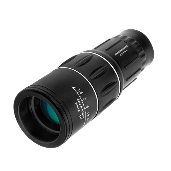 2. Смотреть далеко и ясно:16x52 телескоп: 16x Увеличение можно увидеть дальше и четче, объектив диаметром 52 мм, что делает поле зрения более широким и удобным для просмотра.