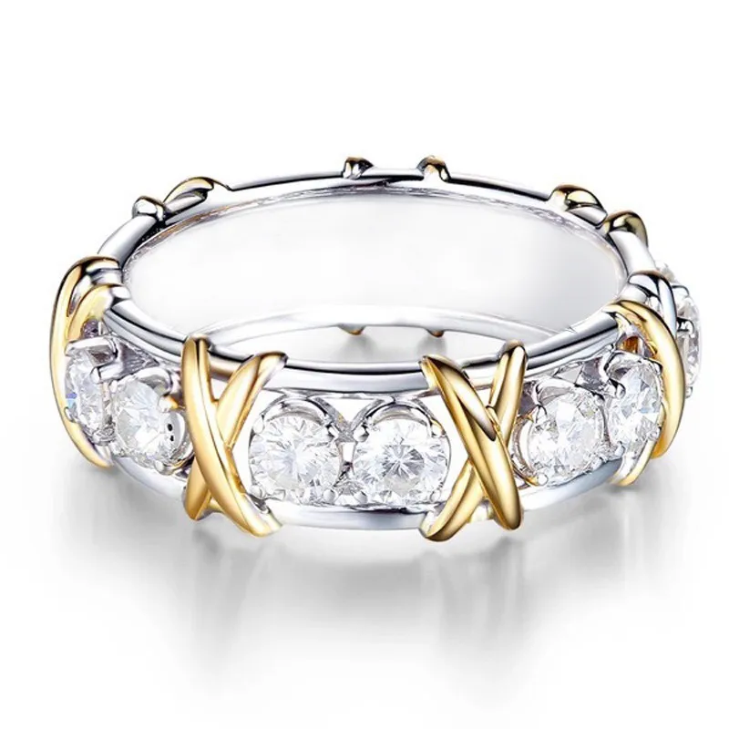 Мода Женское золотое обручальное цветочное кольцо с цветным разделением
