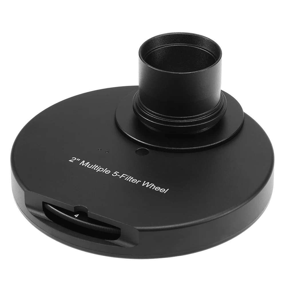 5-фильтр колесо позволяет устанавливать разные декларантами таким образом, чтобы быстро и легко изменить для различных фильтров. Это действительно экономит время для фильтрованного планетарного и лунного наблюдения, которые требуют различных цветовых фильтров или для трехцветных астрофотосъемки.