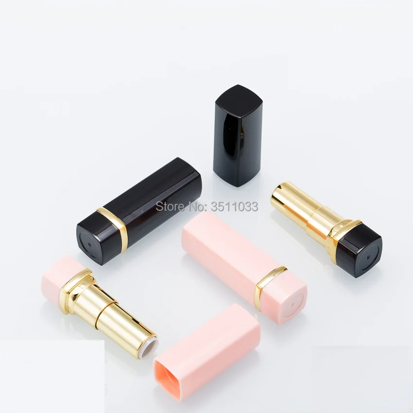 12,1 мм Высокое качество пустой розовый черный квадрат губная помада трубка Косметика ручной работы бальзам для губ Трубки Контейнеры простое Золотое кольцо оболочка