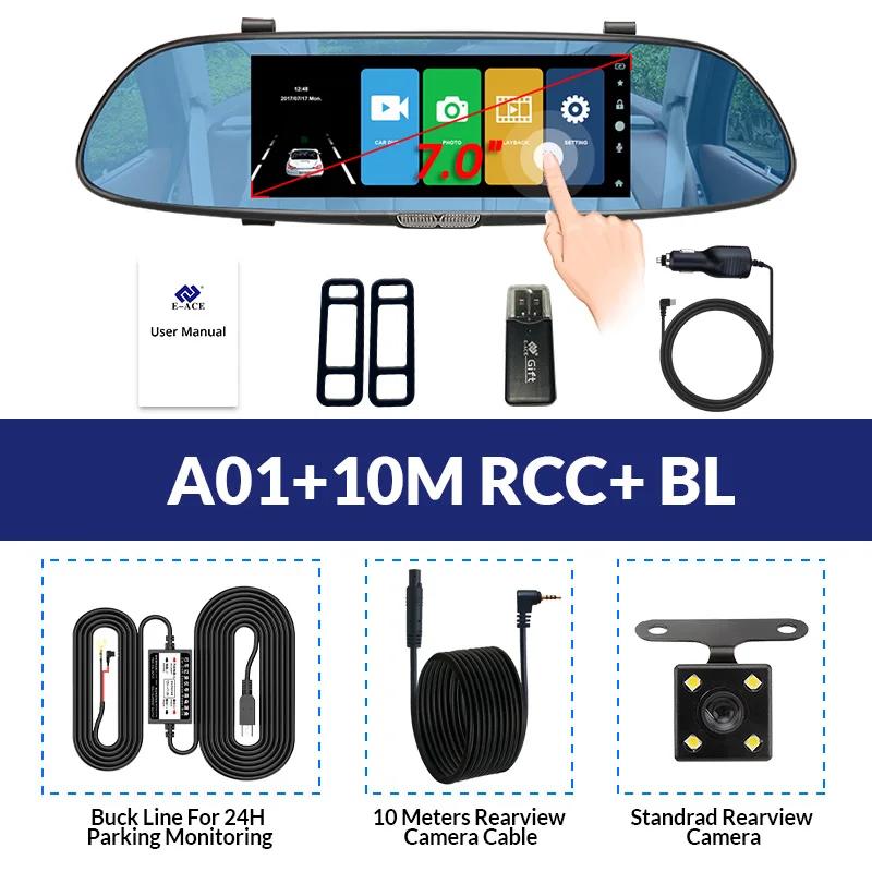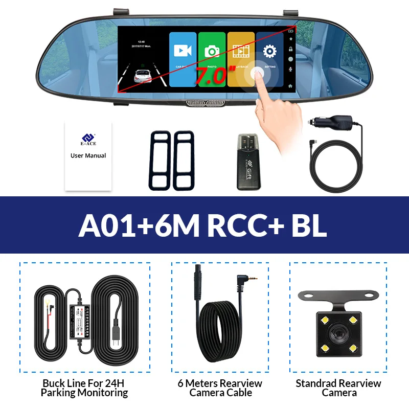 Этот видеорегистратор поддерживает два объектива камеры, объектив фронтальной камеры составляет около 170 градусов, а объектив задней камеры-около 120 градусов. Поддержка изображения на дисплее, два объектива камеры записываются одновременно, все видео сохраняют в TF-карте. При движении задним ходом видеорегистратор автоматически перевернет изображение назад.