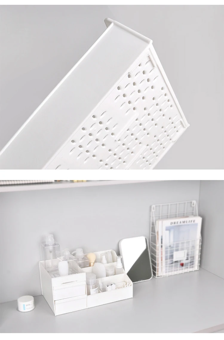 Название: коробка для макияжа Цвет: белый Размер: 13*18*28,5 см Характеристики: дизайн ящика Материал: пластик Использование: ванная комната/Рабочий стол Примечание: 1. Возможны отклонения на 1-2 см в соответствии с измерениями вручную. 2. S светильник разница в цвете, это может быть связано с положением источника светильник и различий в мониторах. 3. Мы предоставляем лучший продукт и обслуживание, если у вас есть какие-либо проблемы, пожалуйста, сообщите нам, мы решим проблему