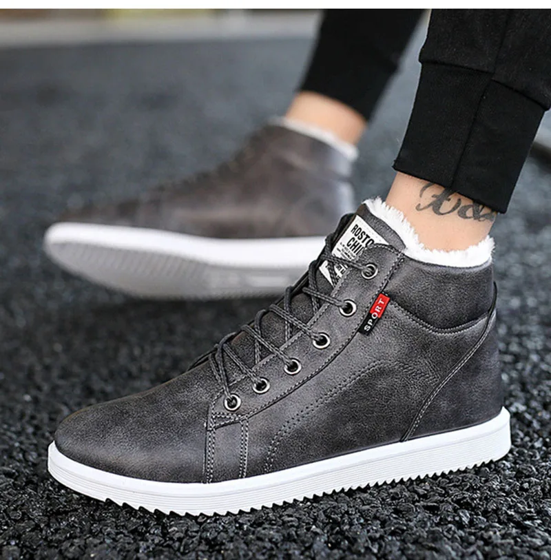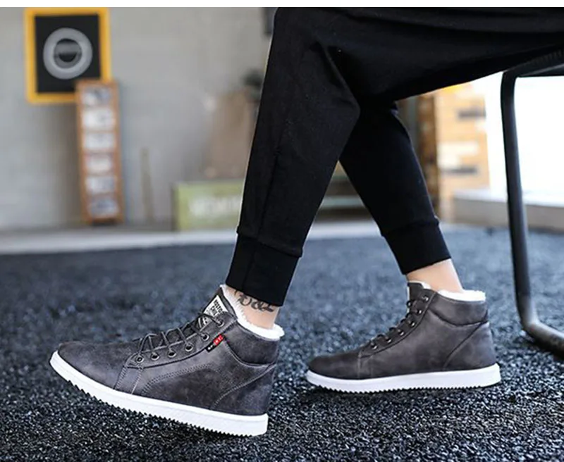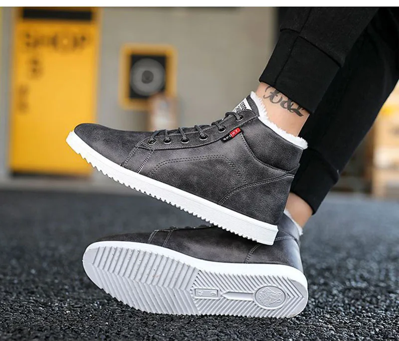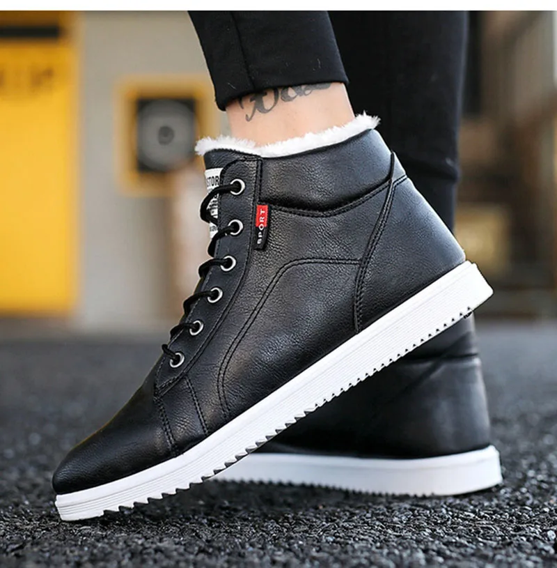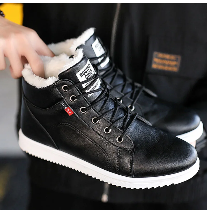 Мужские зимние ботинки с мехом, Теплые повседневные кожаные ботинки с плюшевой подкладкой, кроссовки, 2019