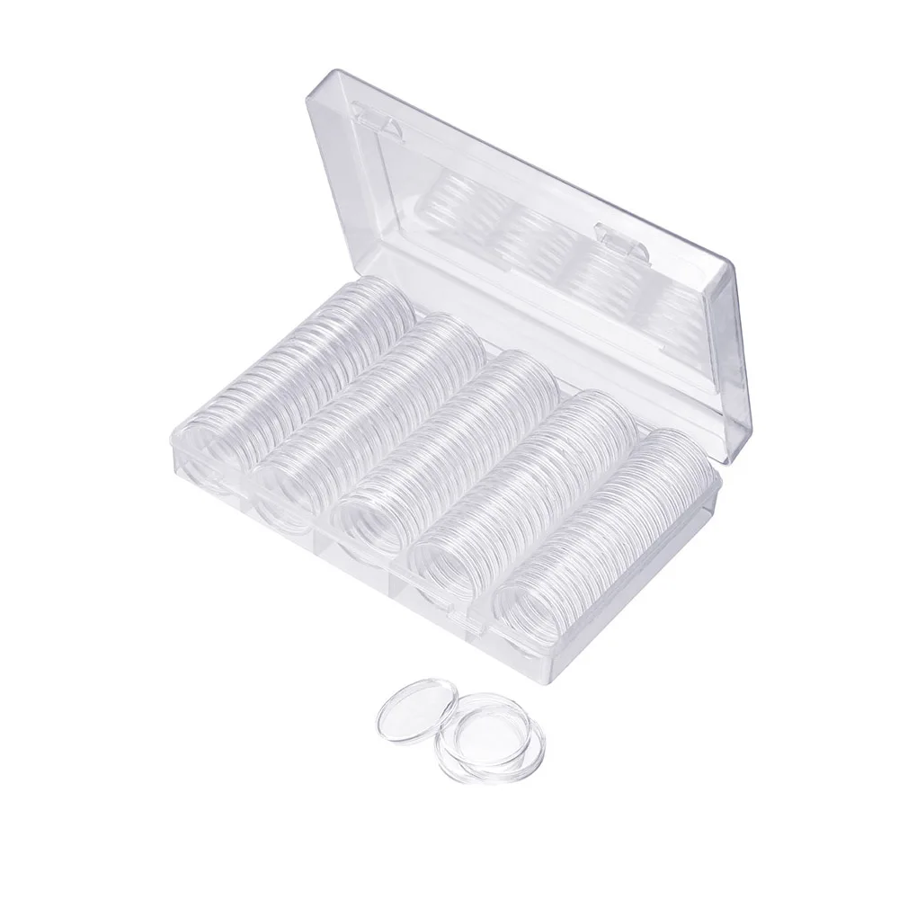 7,27*4,72 дюйма (Д * Ш) Монета коробка для хранения может содержать max 100 шт. монеты отлично предохранит ваше Монета Чехол желатиновых капсул, и не беспокойтесь, что они рассортированы и организованно. 100 шт капсулы для монет внутри коробки для хранения монет могут быть достаточны для вашей большой коллекции.