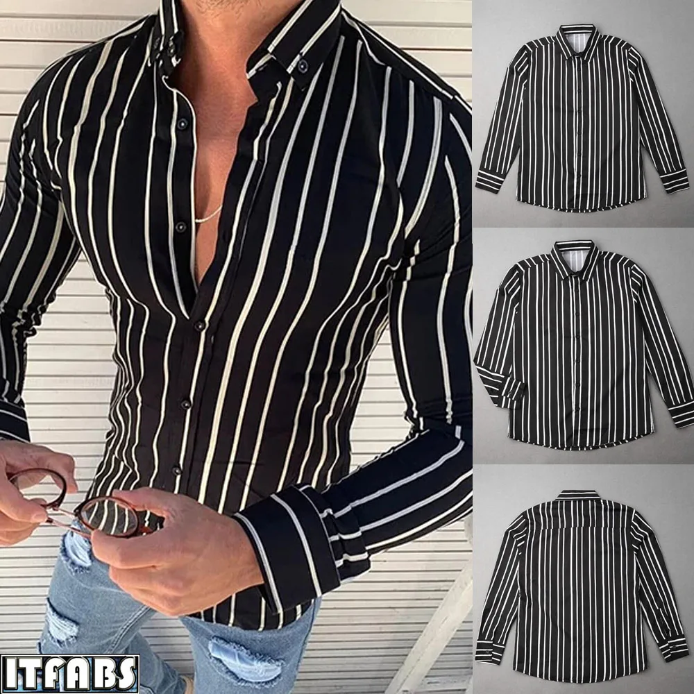 Стиль:Мужская повседневная полосатая летняя рубашка, топы, блузки