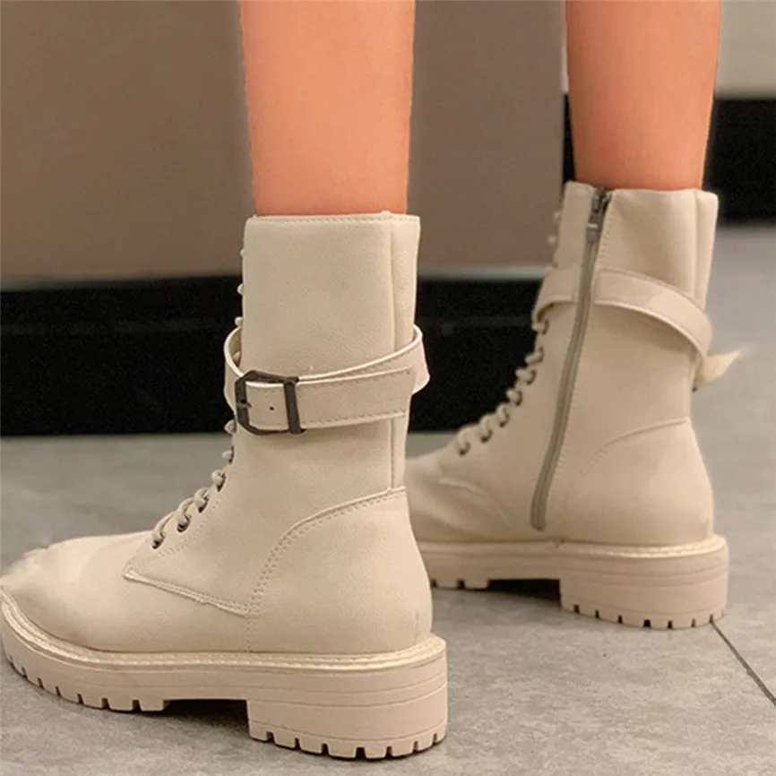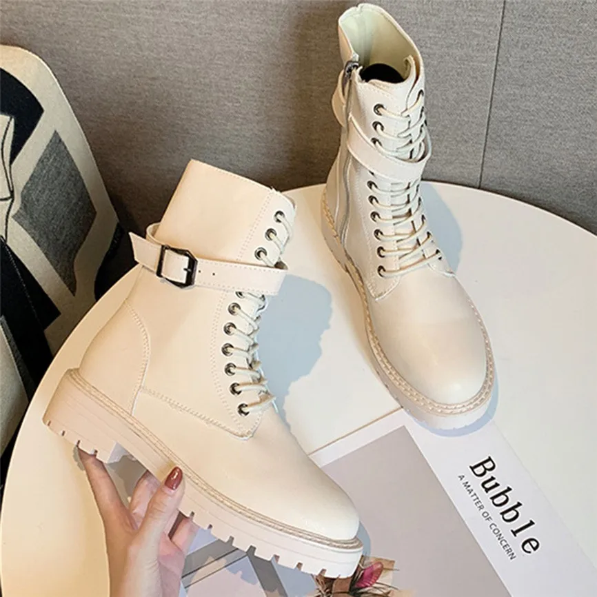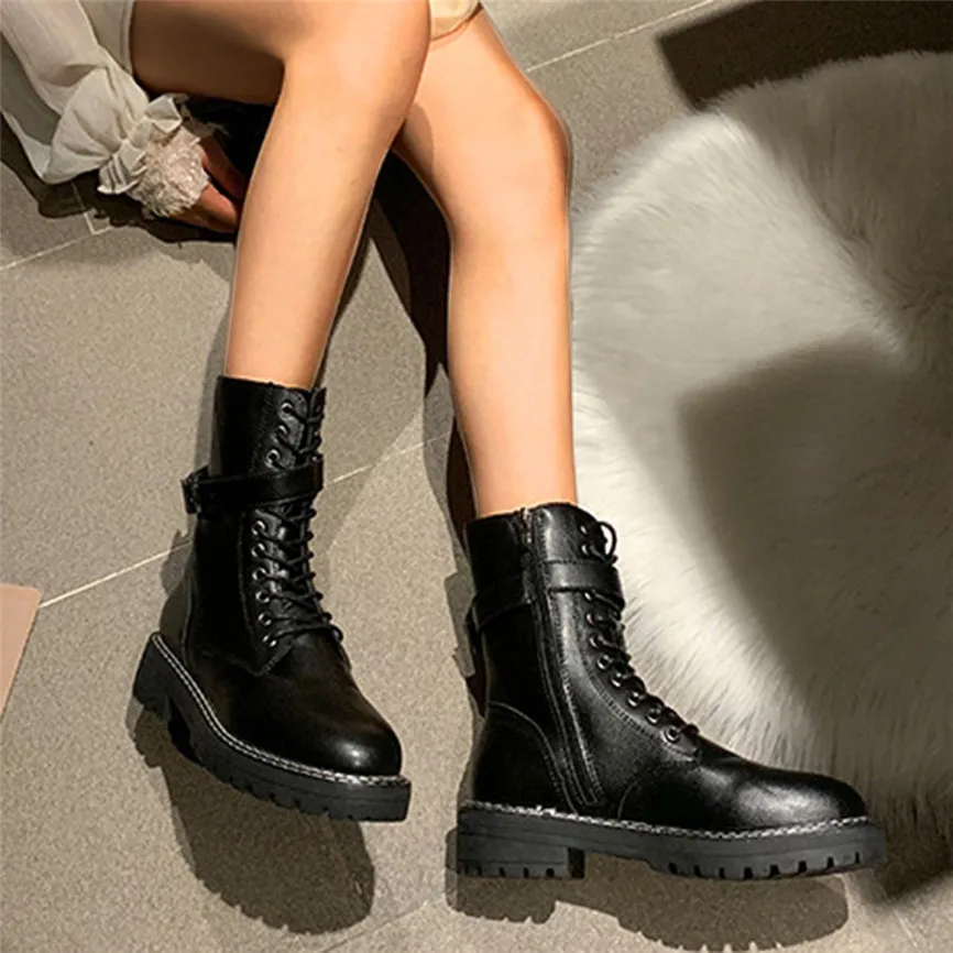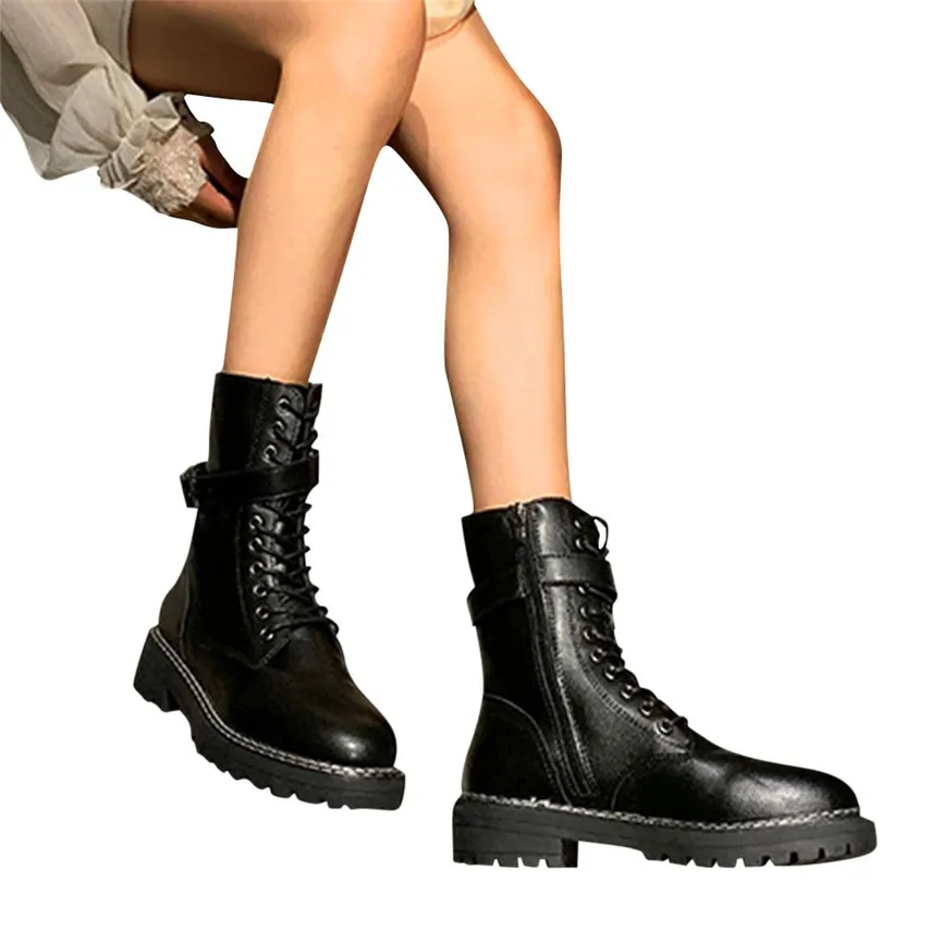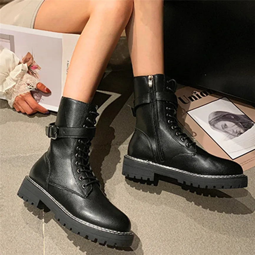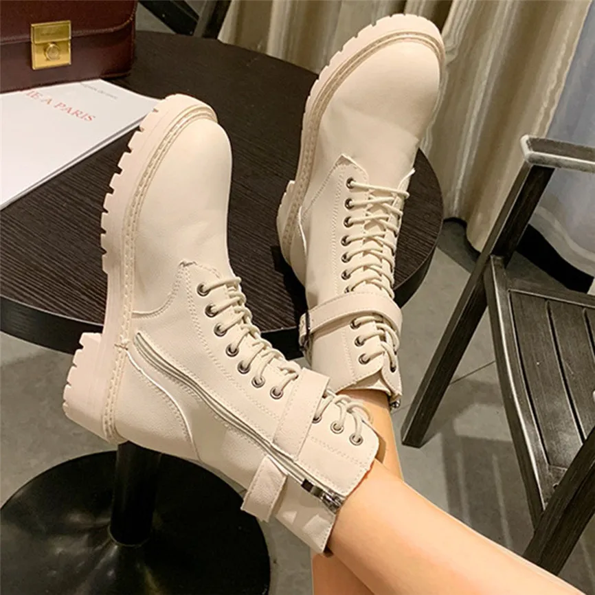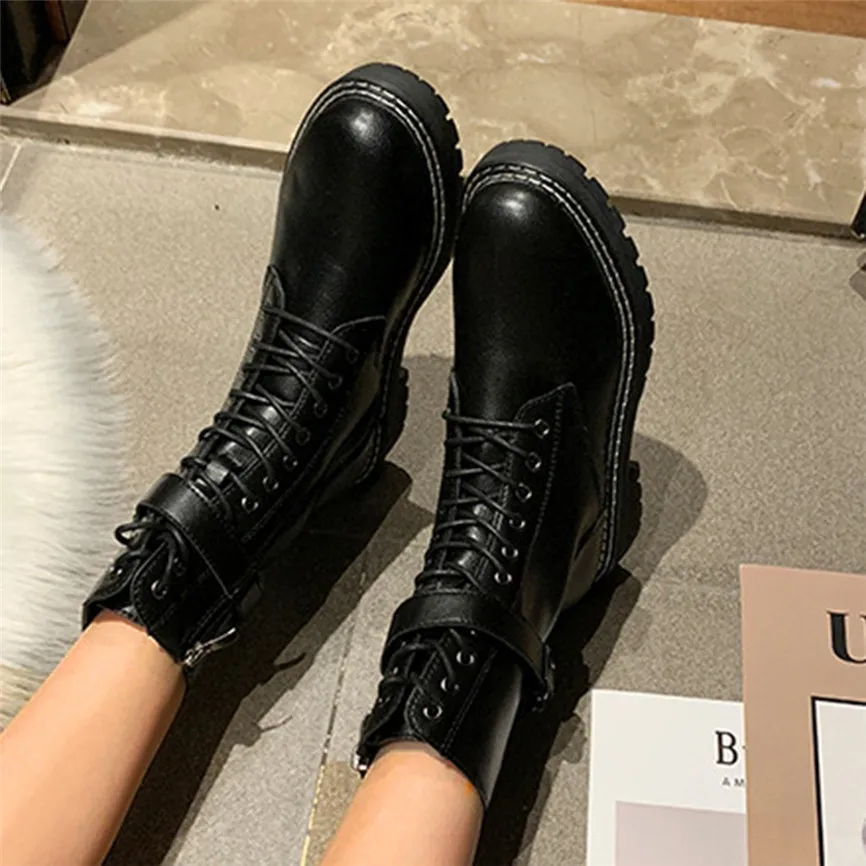 Красивые женские ботинки Ботинки martin в байкерском стиле с пряжкой на молнии высококачественные однотонные сапоги на платформе осенне-зимние ботильоныОбратите внимание: Так как разные компьютеры отображают цвета по-разному, цвет фактического товара может незначительно отличаться от приведенного выше изображения.