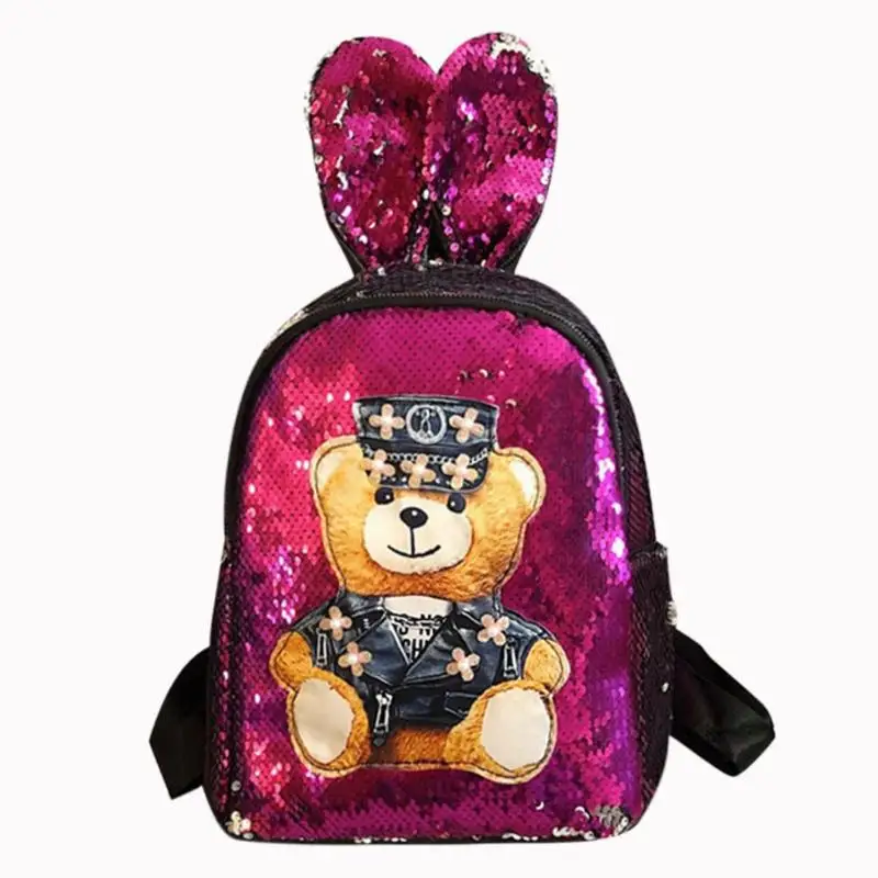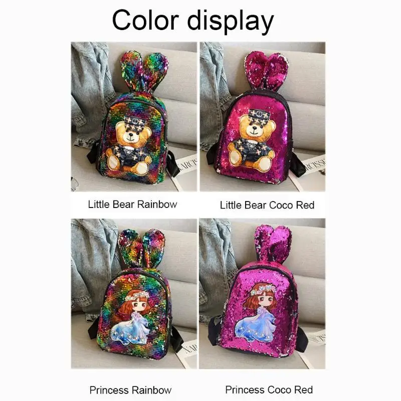 Блестящий рюкзак с милыми заячьими ушками для студентов, цветная школьная сумка на плечо для девочек, милый повседневный рюкзак с рисунком для путешествий