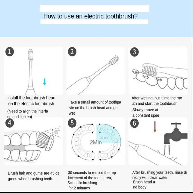 Электрическая зубная щетка звуковая волна перезаряжаемая высокое качество смарт-чип зубная щетка сменная отбеливающая здоровая лучшая подарок!