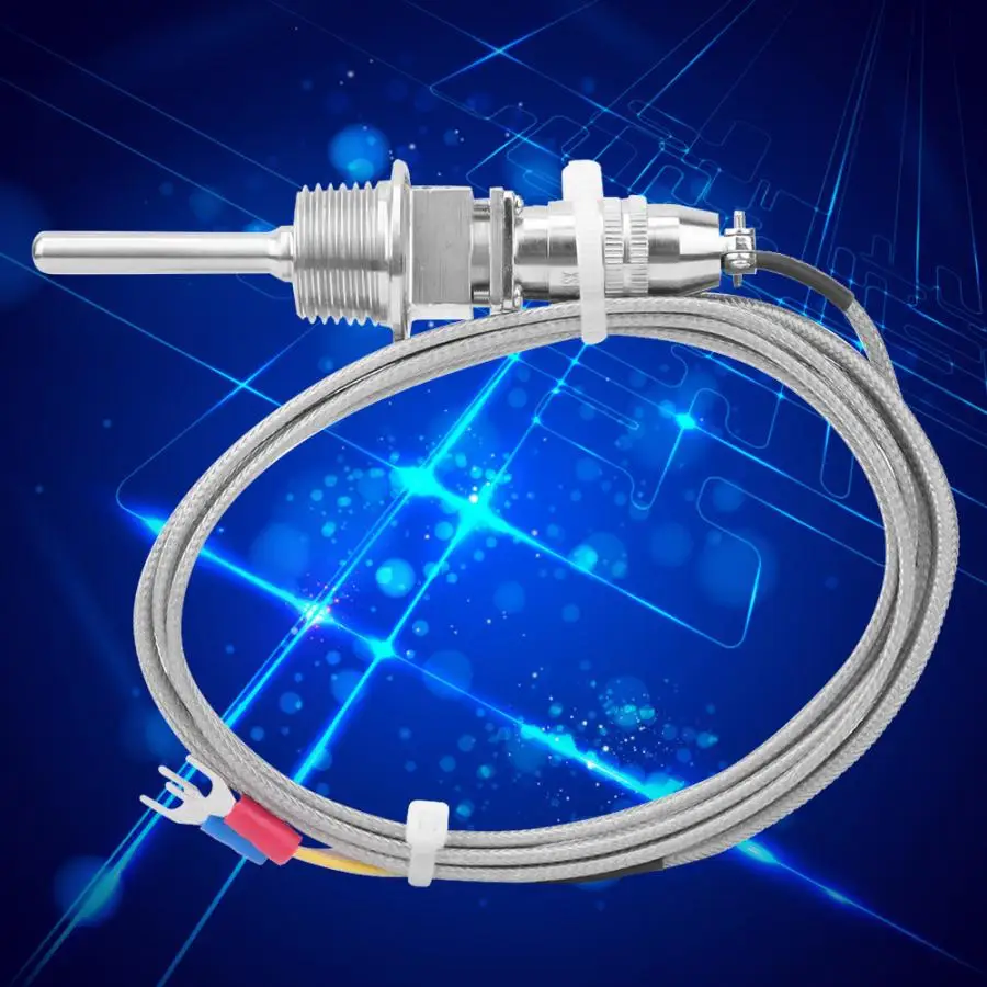 K-Type Temperature Sensor RTD Stainless Steel Thermocouple Temperature Probe 1/2 NPT Detachable 3-Pin Connector with 2m / 6.6ft Cable