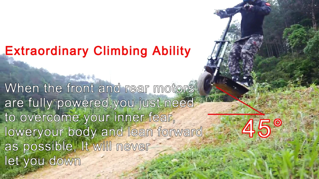 Топ-версия Двигатель: 60 в 1200 Вт * 2 передний и задний двухприводный двигатель Литиевая батарея: 18650 ячеек 60V 26AH Количество разряда: 1237Wh N.W. : 34,5 кг Время зарядки (Поддержка двойной зарядки): 5,5-11 часов Максимальная скорость: 70 км/ч Диапазон (Эко) : 70 км Наклон: 45 ° Вес нагрузки: 150 кг
