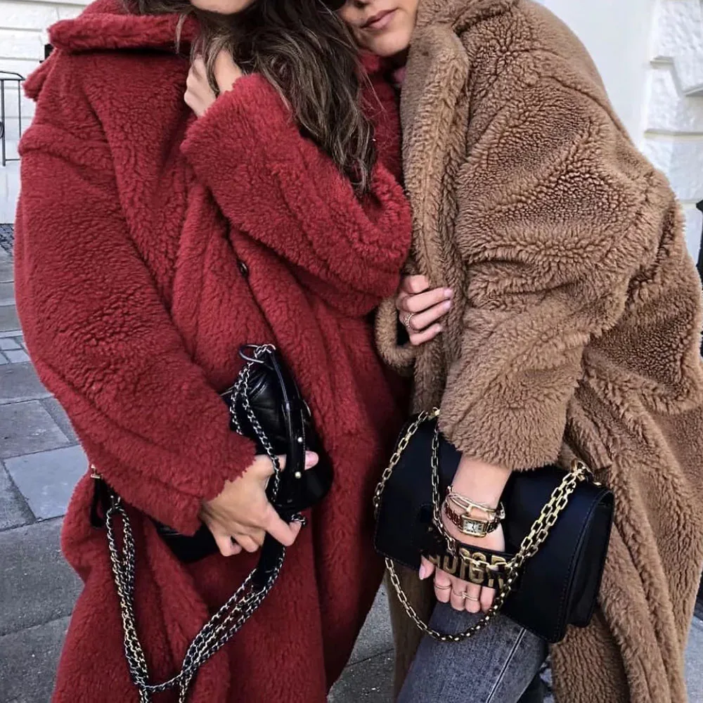 Зимнее пальто с мишкой Тедди женское модное длинное пальто из искусственного меха дамское модное пальто из плюша и флиса женская теплая одежда оверсайз 2019