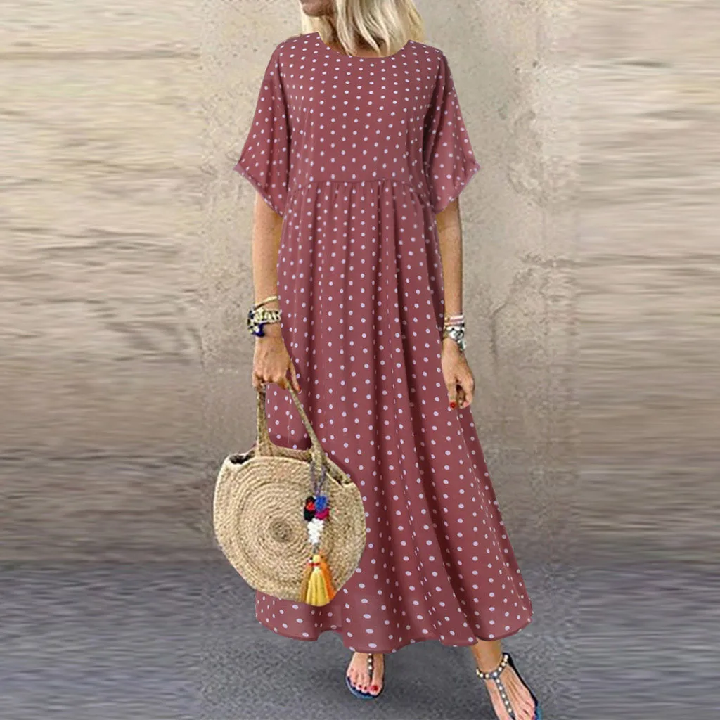 1. Особенности: круглый вырез, короткий рукав, узор в горошек, Повседневное платье, модное Повседневное платье размера плюс