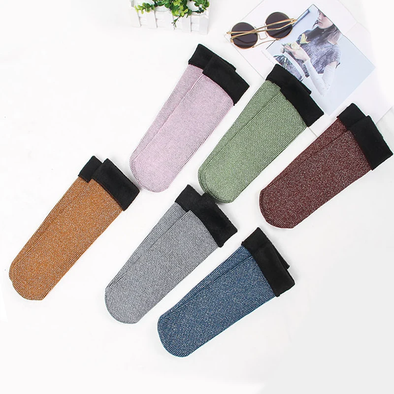 Золотые, серебристые зимние носки, женские носки, бархатные теплые носки, толстые носки-Тапочки