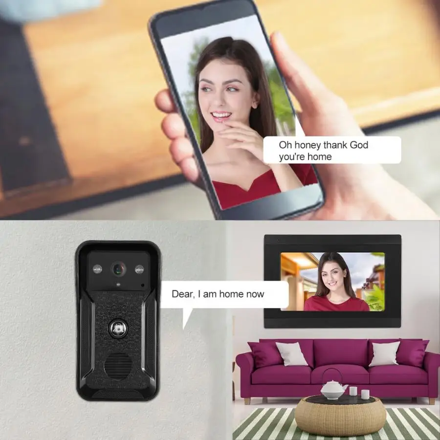 7in 1080 P HD проводной Wifi видео дверной звонок приложение дистанционного ночного видения домофона 100-240 В
