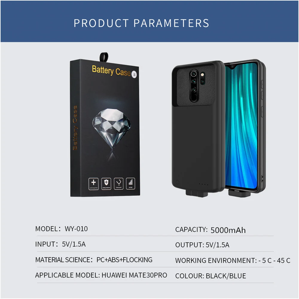 5000 мАч ультра тонкий внешний аккумулятор зарядное устройство чехол s для Redmi Note 8 Pro Внешняя батарея, крышка батареи для Redmi Note 8 чехол питания