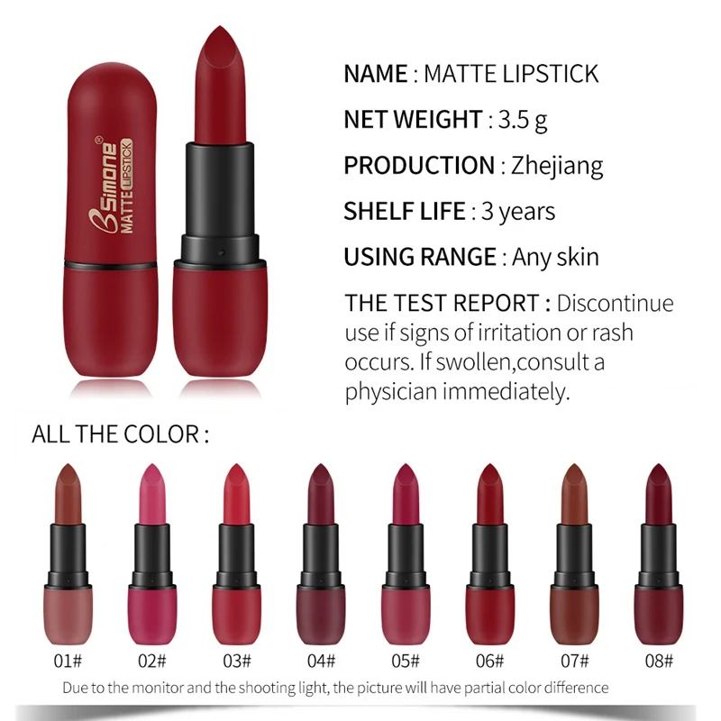 4.Matte finish, light-weight formula as smooth as silk can be glided effortlessly to achieve sexy lip makeup.
