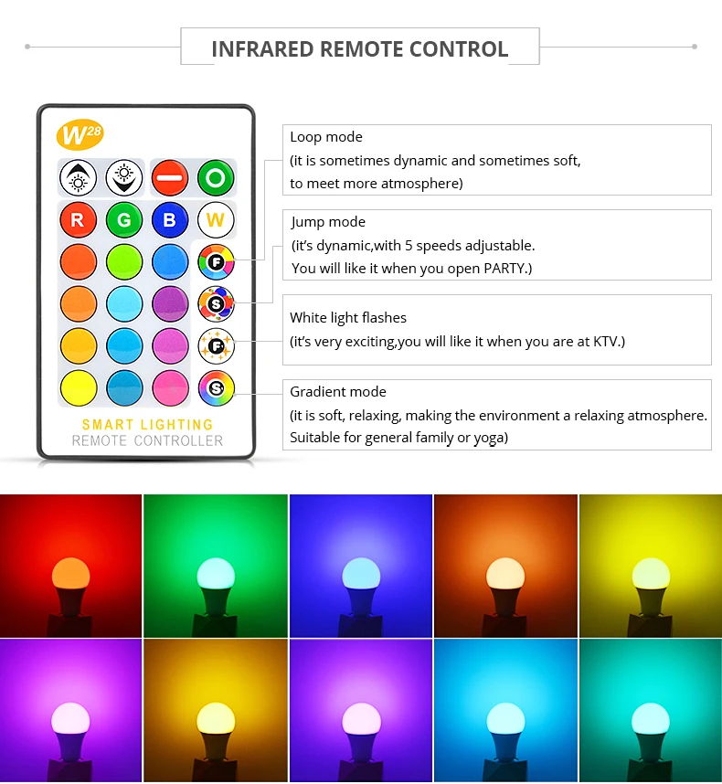 Цвет излучения: RGBWW (RGB + теплый белый) / RGBW (RGB + белый).