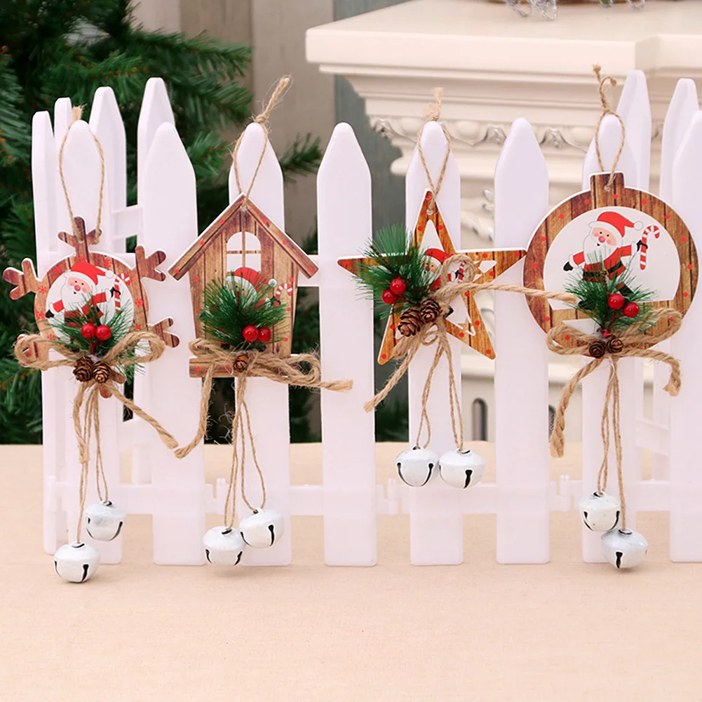 4 шт. деревянный Рождественский колокольчик подвеска звезда дом форма орнамент для рождественской елки дверь подвеска украшение для дома праздник украшение